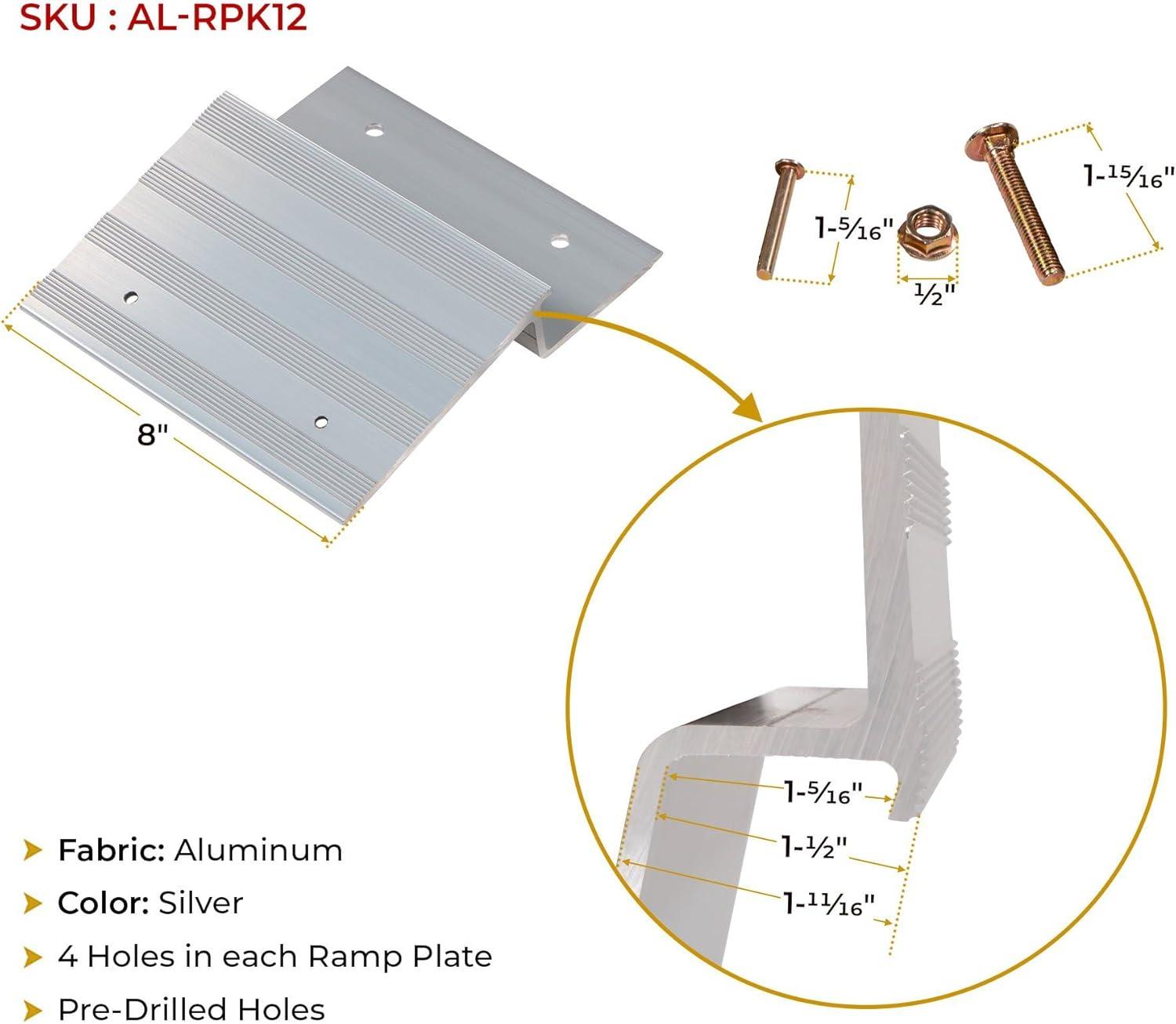 - Aluminum Construction: We have engineered these ramp brackets from 3/16″ Aluminum, keeping them lightweight, corrosion—and rust-resistant. The silver color plates will seamlessly integrate with 8″ width lumber board/planks & panels AND 1-5/16″ thick, giving an uninterrupted path to load or unload your vehicles. Your board will fit in perfectly on the ramp. Thus, your board will be converted into a temporary ramp, enabling you to create your own ramp.
