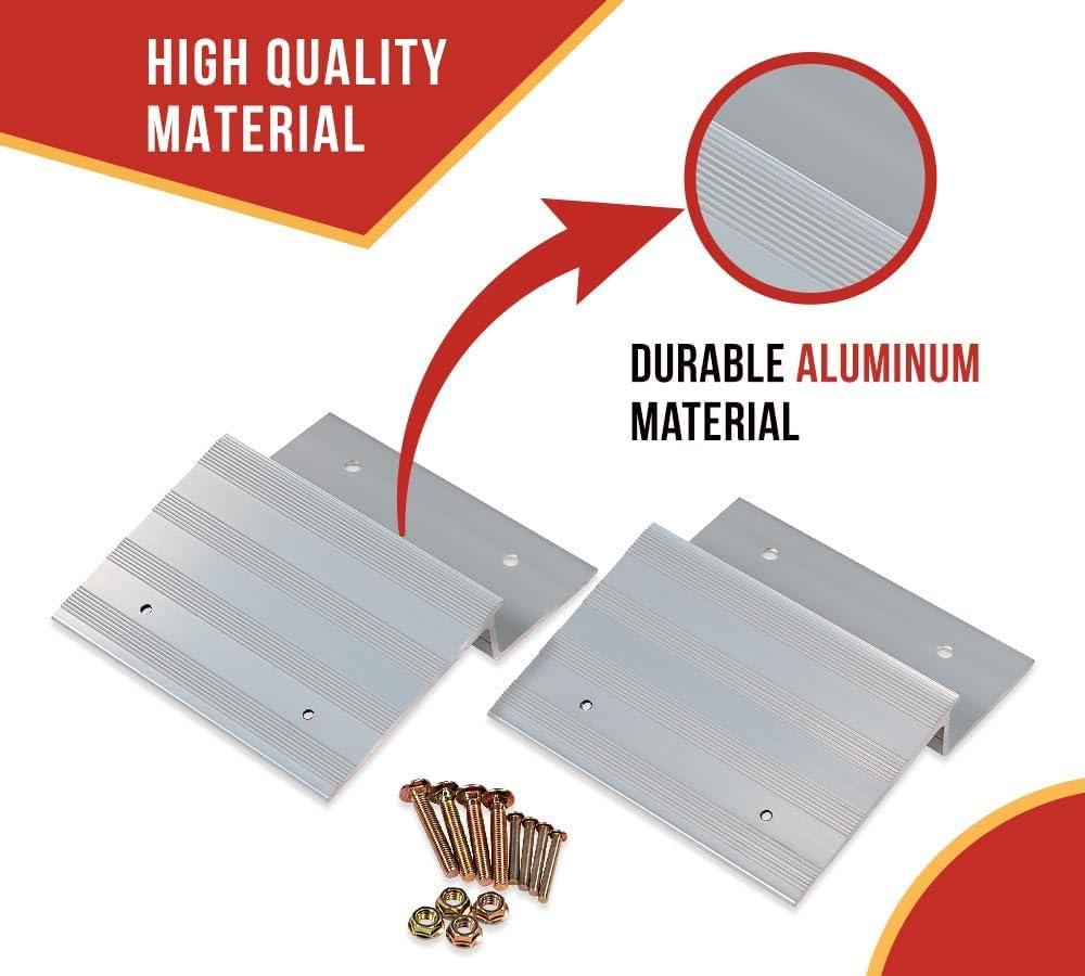 - Lightweight & Portable: Our DIY aluminum plates are lightweight compared to metals like steel. However, it can hold a capacity of up to 750 lbs. This ramp kit is easy to handle and portable compared to large heavy-duty ramps. These aluminum ramp plates will also provide a smooth transition for vehicles.