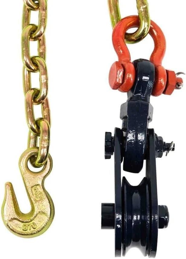 Mytee Products 2 Ton Snatch Block w/Chain Anchor & Wire Rope Steel Core Winch Cable 3/8″ x 50′ Swivel Hook Replaces(75′ Winch Cable w/ Snatch Block)
