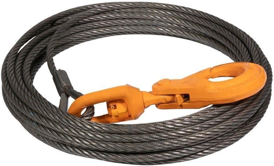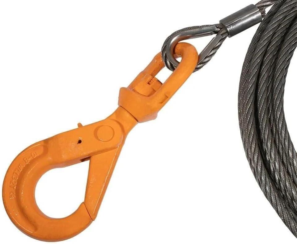 Wire Rope Steel Winch Cable 3/8″ x 50' Self-Locking Swivel Hook