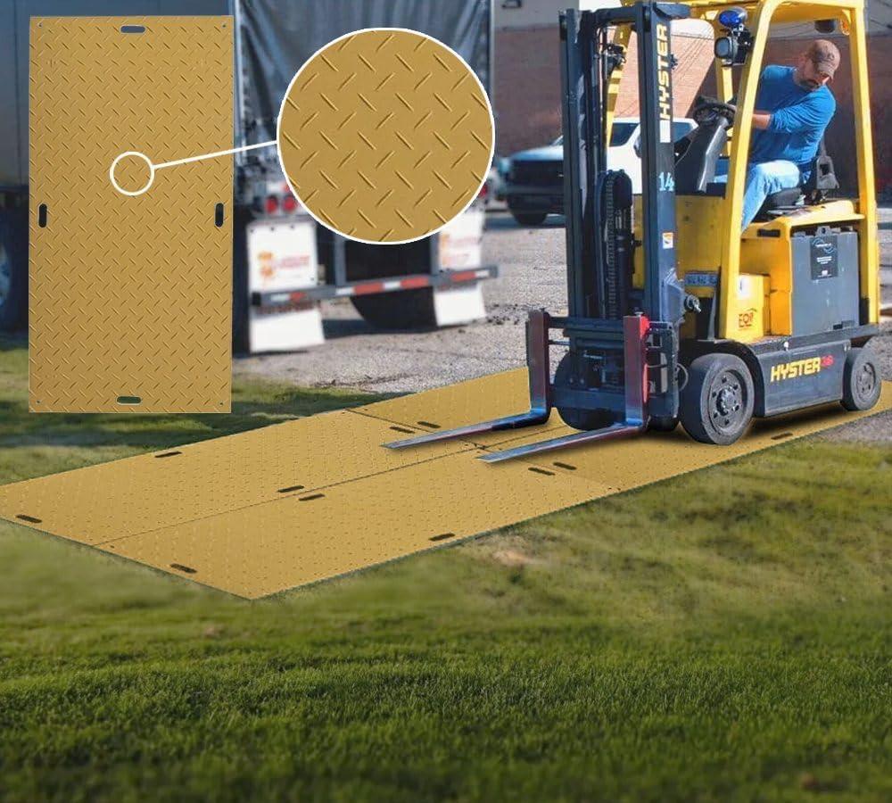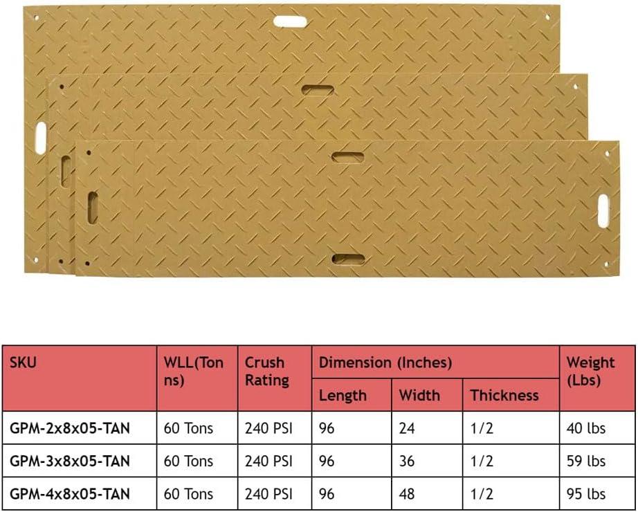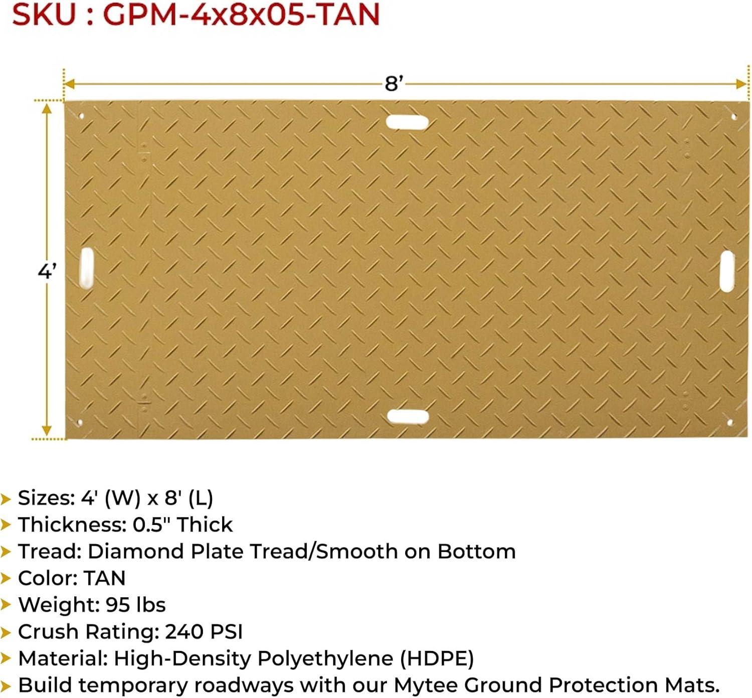 Mytee Products 2' x 8' Tan Ground Protection Mats with Diamond Plated Tread Design - High Density Polyethylene Mat, Easily Supports 60 Ton Loads on Lawns, Dirt, and Any Other Areas(4 FT x 8 FT)