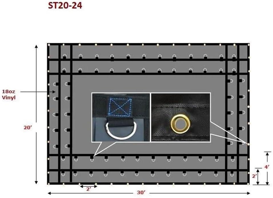 Mytee Products 20' x 24' Flatbed Truck Tarps Heavy Duty Steel Machinery Tarp - Black(1 - Pack)