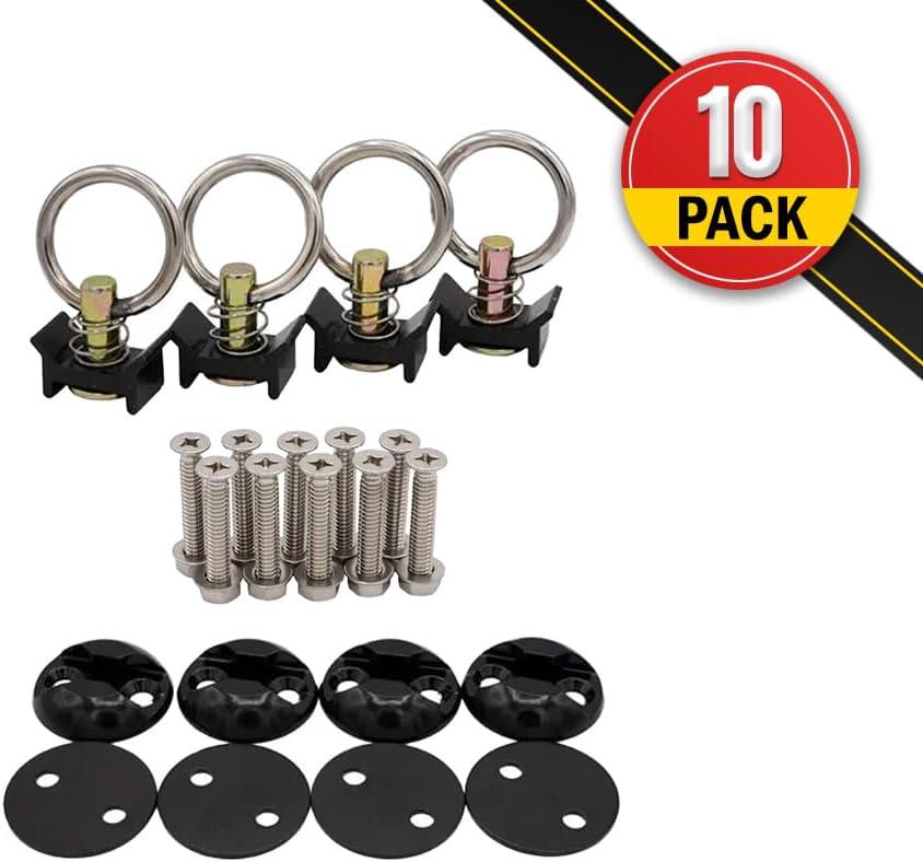 Mytee Products 22 Pieces Black L-Track Tie Down Kit with 2″ Round Anchor Point for Trucks or Trailers to Tie Down Your Boat, UTV, ATV, Motorcycle, Lawnmower(10 – Pack)