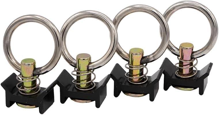 Mytee Products 22 Pieces Black L-Track Tie Down Kit with 2″ Round Anchor Point for Trucks or Trailers to Tie Down Your Boat, UTV, ATV, Motorcycle, Lawnmower(4 – Pack)
