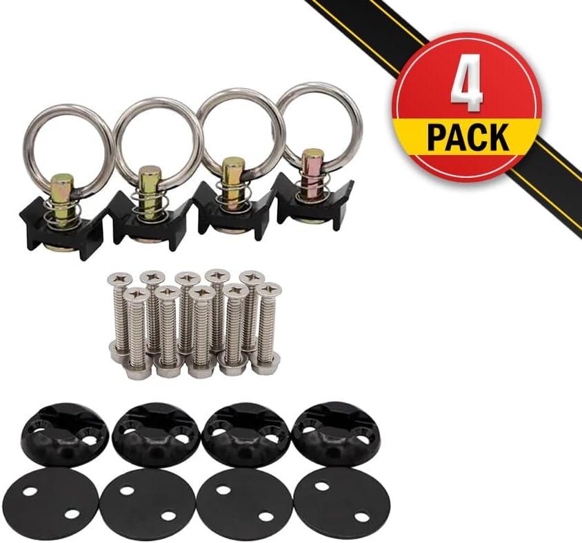 Mytee Products 22 Pieces Black L-Track Tie Down Kit with 2" Round Anchor Point for Trucks or Trailers to Tie Down Your Boat, UTV, ATV, Motorcycle, Lawnmower(4 - Pack)