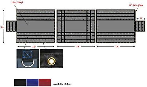 Mytee Products 24' x 18' 3 Piece Flatbed Trailer Lumber Tarp with 8 FT Drop - Heavy Duty Black 18 Oz Vinyl Waterproof Tarp for Truck/Trailers to Protect Cargo from Wind, Rain, Snow and Sun