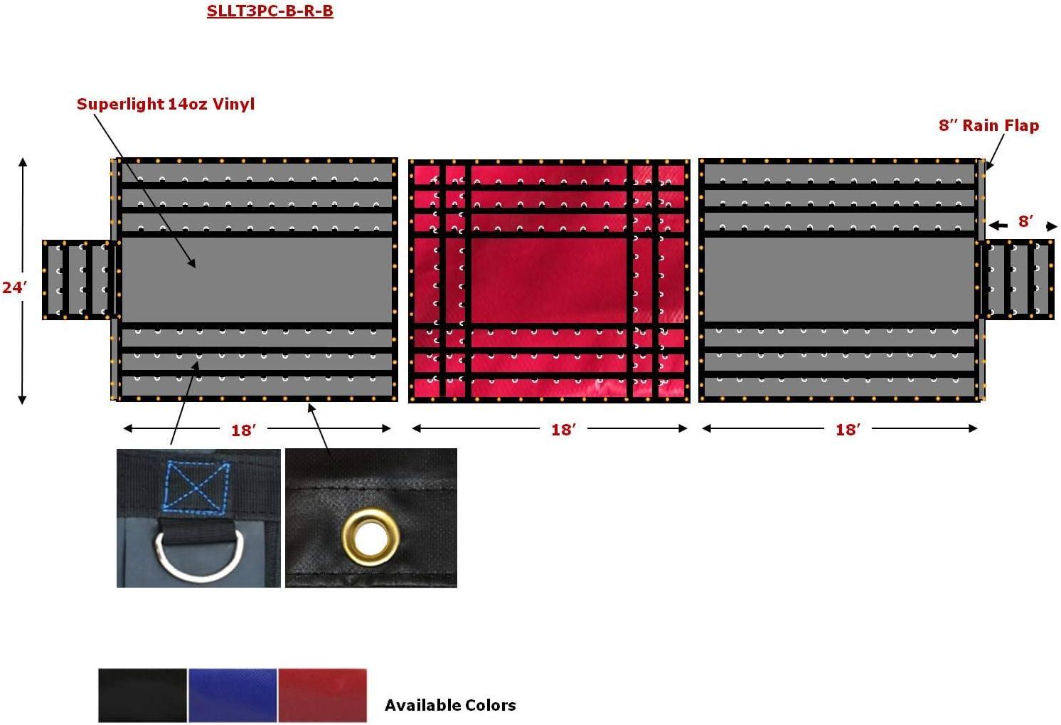 Mytee Products 24' x 18' Flatbed Trailer 14 Oz Lightweight 3 Piece Lumber Tarp w/ 8 FT Drop - Heavy Duty Black/Red Vinyl Waterproof Tarp for Truck/Trailers to Protect Cargo from Wind, Rain, Snow & Sun