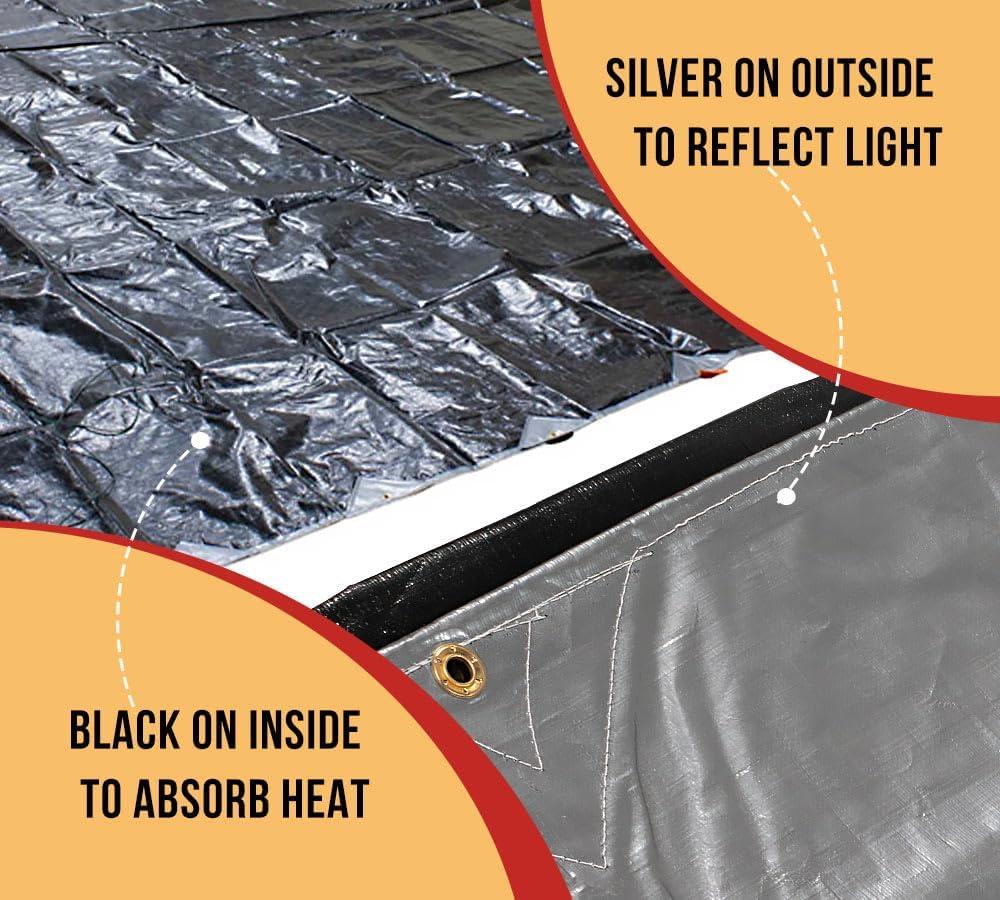 Mytee Products 25′ x 33′ Heavy Duty 8oz Hay Tarps – 14.5 mil Waterproof Poly Tarpaulin with UV & Frost Resistance, Silver/Black, Tear-Proof Cover for Agriculture, Equipment(28′ x 48′)
