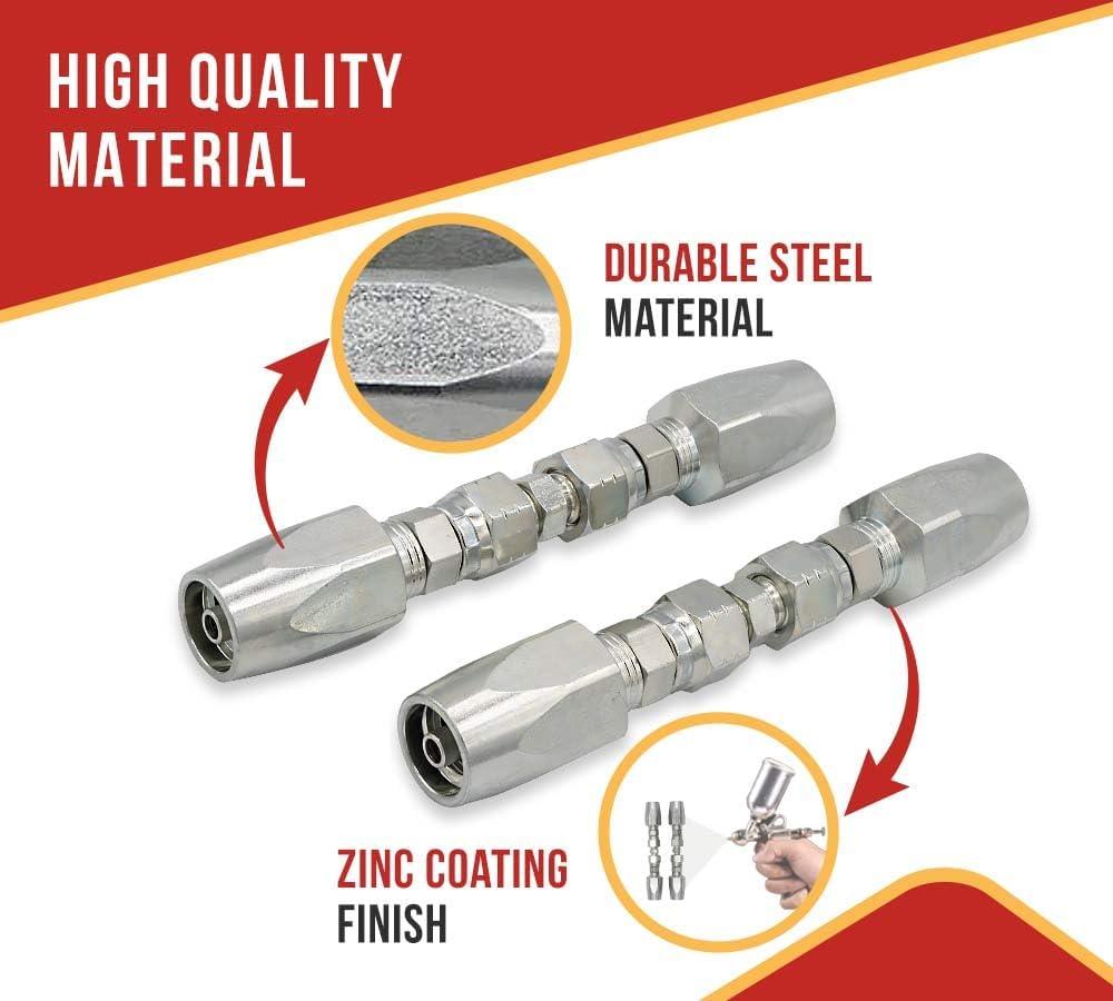 • Robust Construction: The hyd hose fittings are engineered from steel and coated with zinc. The material will ensure robustness and longevity despite multiple uses and applications whereas the coating will protect them from corrosion and rust. Changing weather conditions and the environment will have the least effect on the material.