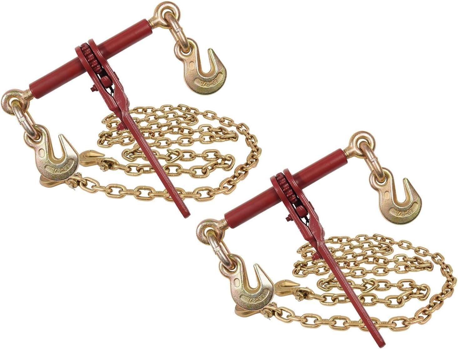 imageMytee Products 38 Grade 70 Chain and Binder Kit  Includes 4 38  12 Ratchet Load Binder Extreme amp 4 38 x 12 G70 Transport Chain wGrab Hooks  6600 lbs WLL for Truck Trailer Tie Down2  Pack