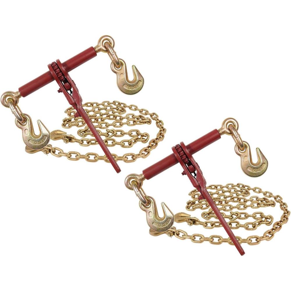 (4) 3/8″ x 12' Grade 70 transport Chain – w/ grab hooks on each end. Working Load Limit: 6,600 lbs. Capacity: 26,400 lbs.