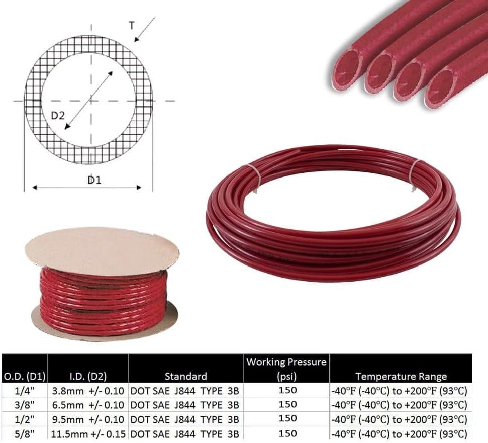 imageMytee Products 38quot OD x 500 Black SAE J844 Nylon Air Brake Tubing DOT Approved  Pneumatic Nylon Air Line Hose for Air Brake SystemRed