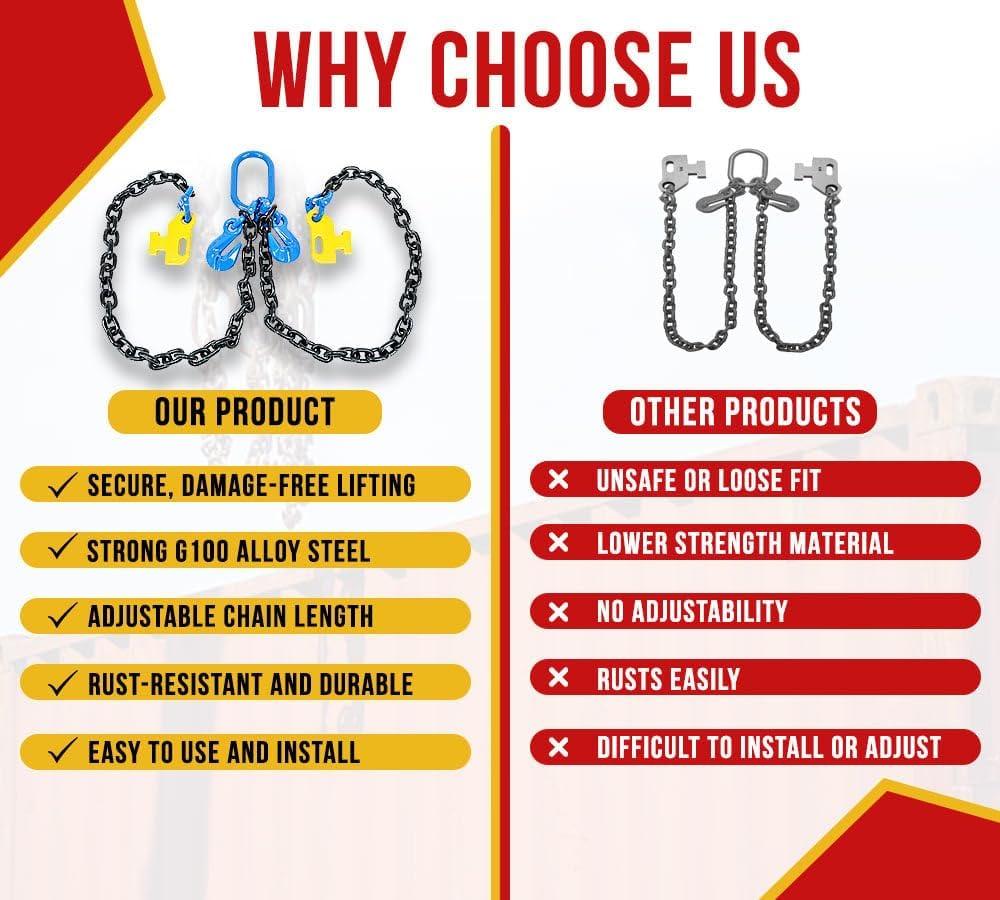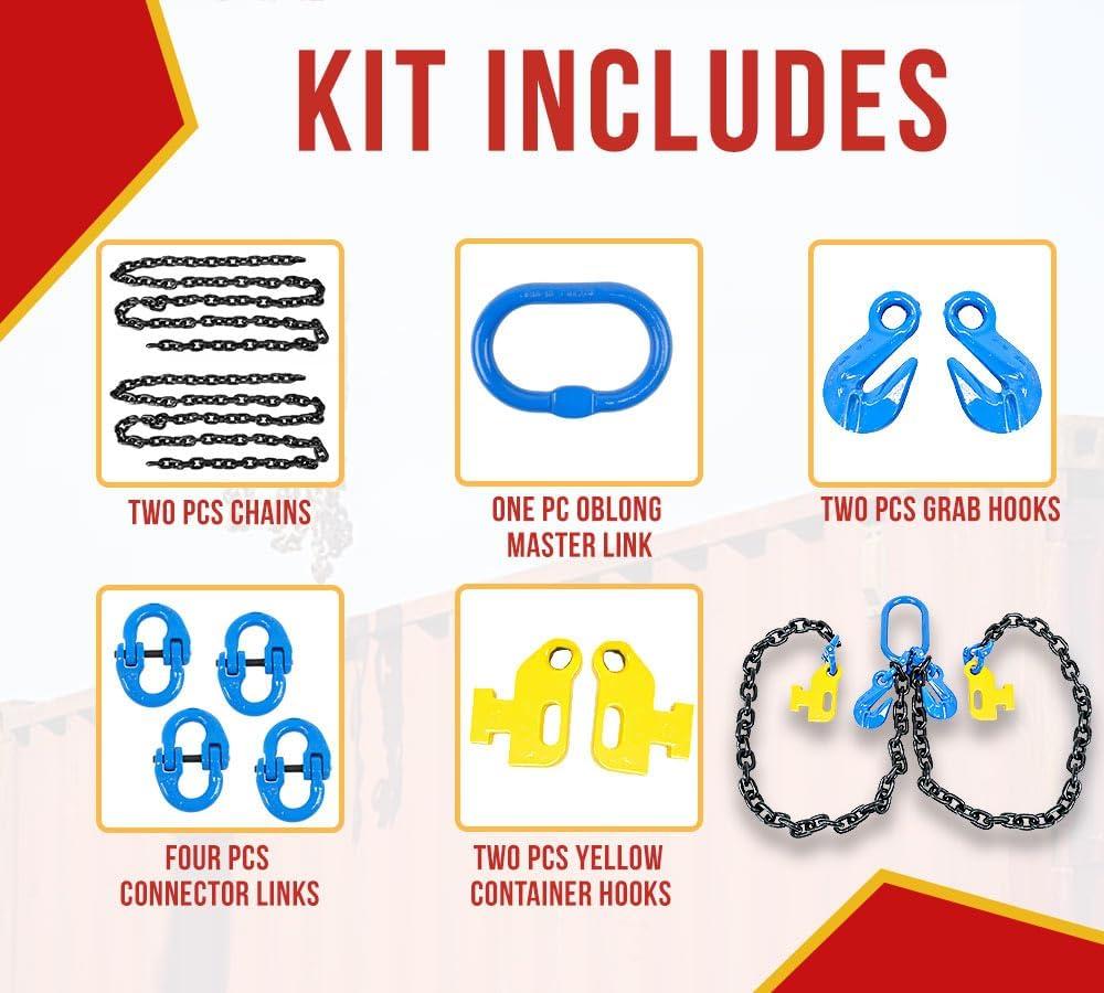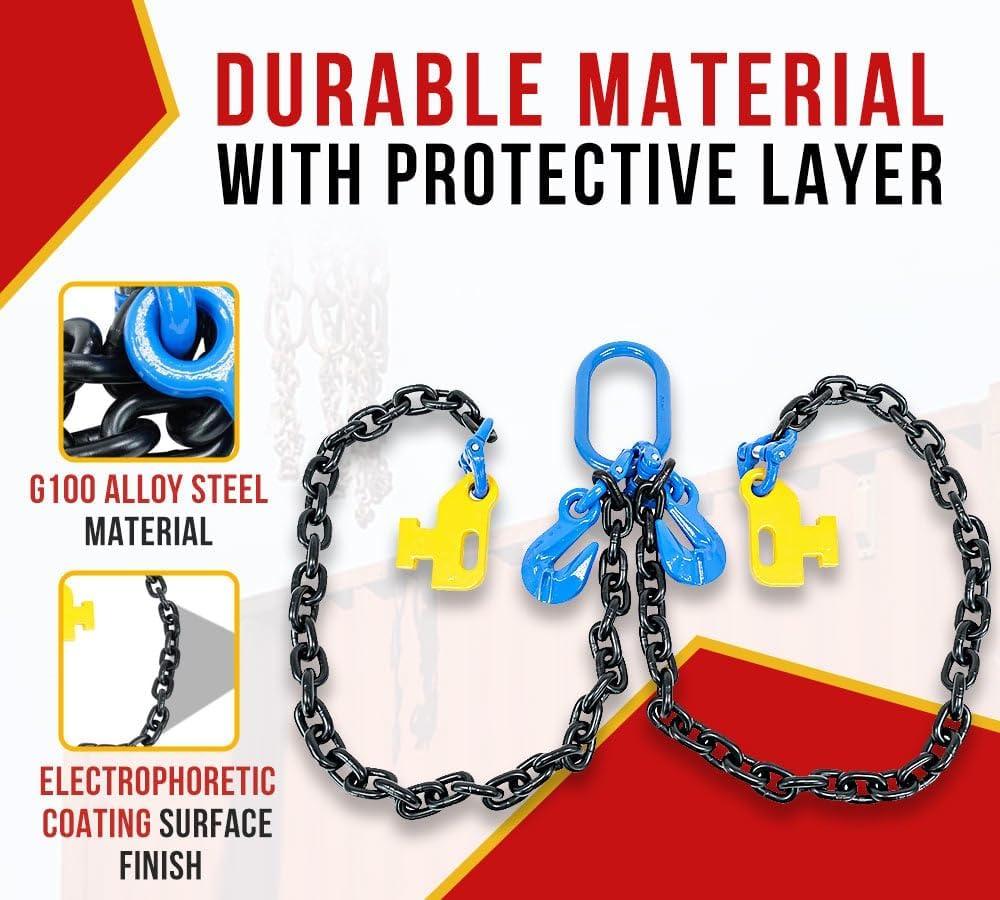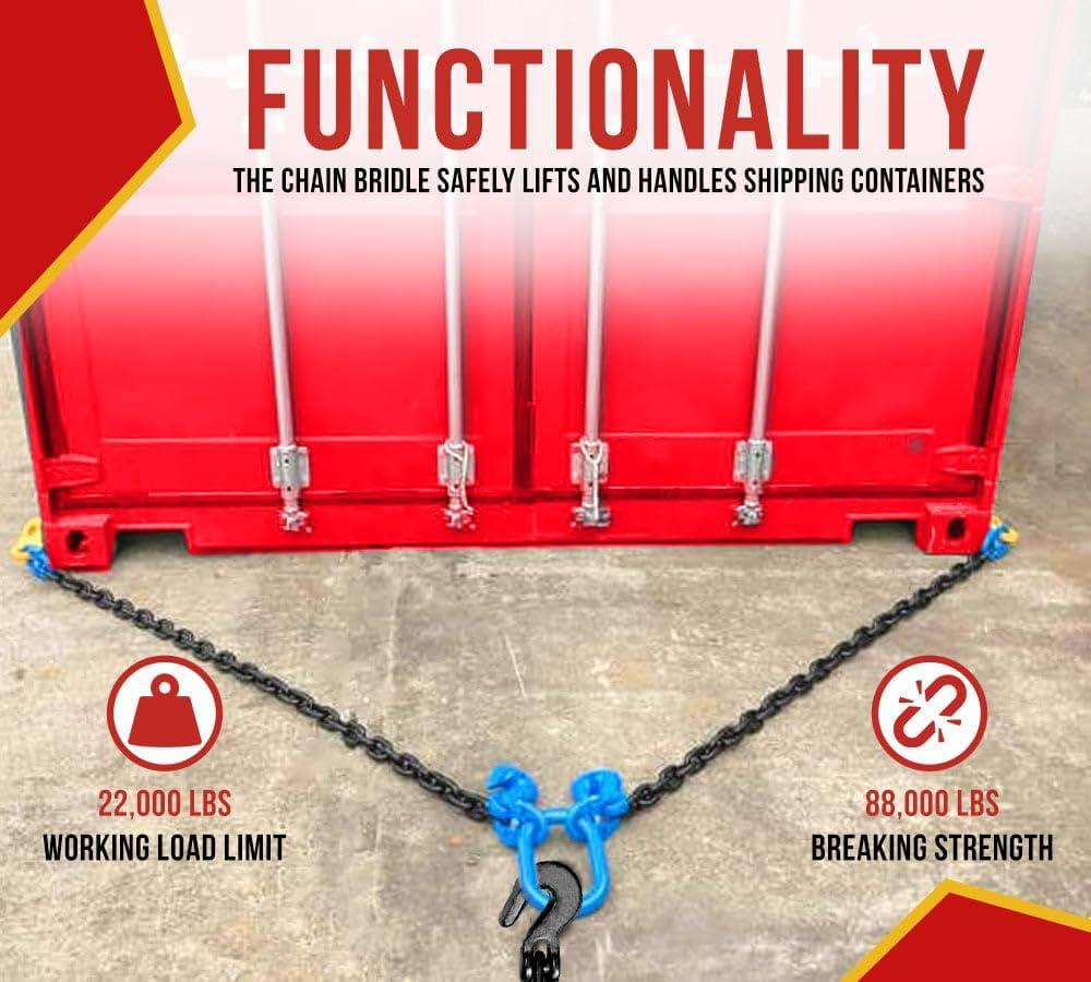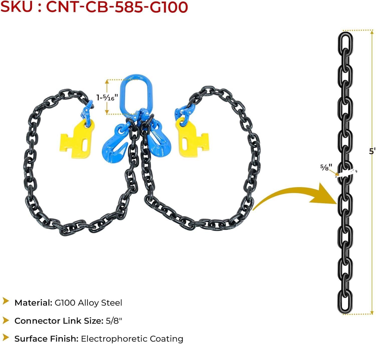 Mytee Products 3/8″ x 5′ Sea Shipping Container Loading Chain Bridle G100, V-Chain, Cargo, Storage, Moving(5/8″ G100)