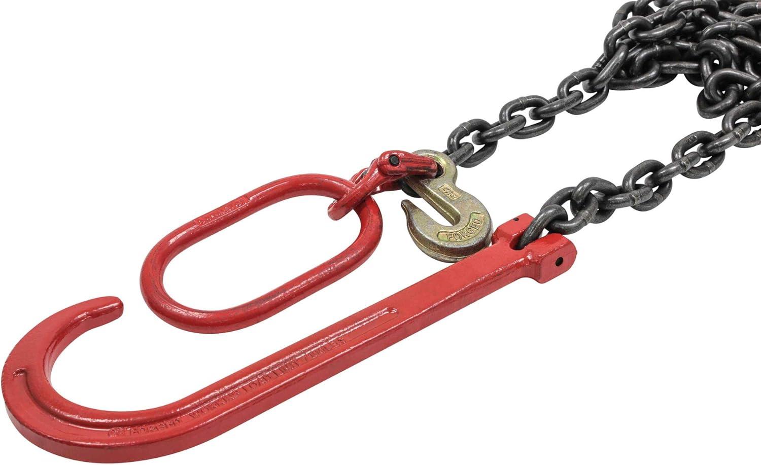 - Tow Recovery 3/8 x 6' Chain G8, 15″ J-Hook, Master Link, 3/8″ G8 Eye Cradle Grab Hook