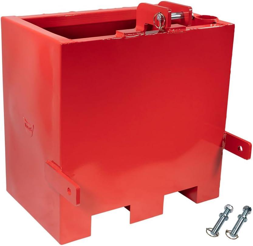 Mytee Products 3 Point Hitch Tractor Ballast Box for Tractors – 800 lbs Capacity – Heavy Duty Steel Welded Box with 2″ Quick Hitch Receiver for Category 1 Tractors, Loaders, and Skid Steers – Red