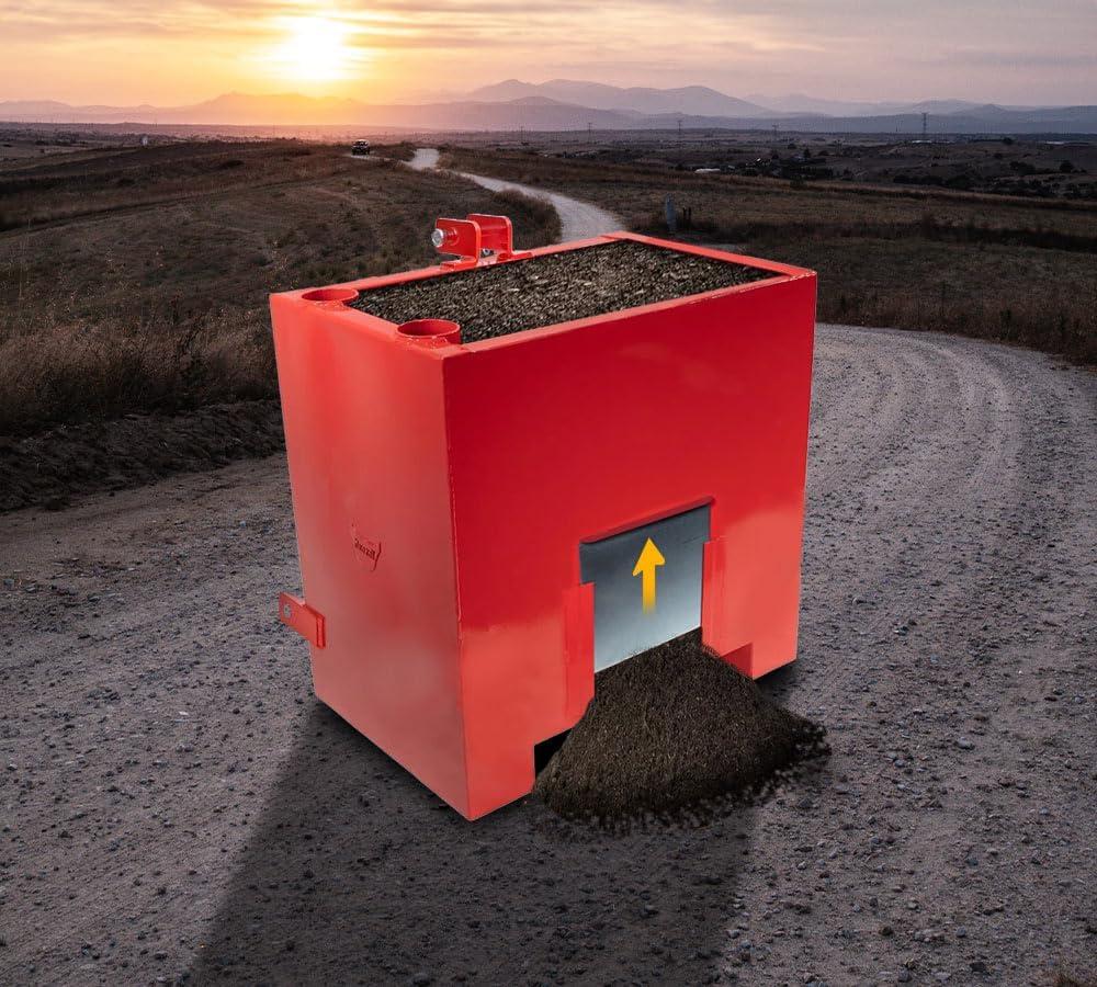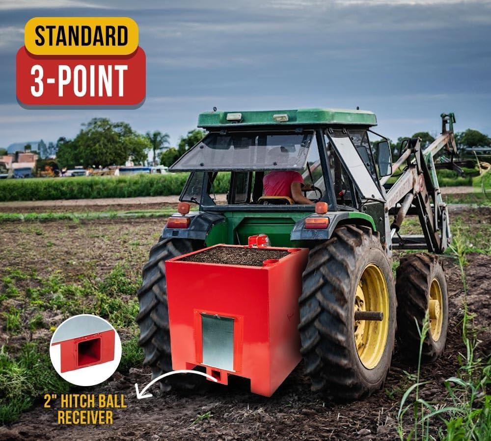 Versatile Compatibility: Designed for use with Category 1 tractors, skid steers, and a 2″ hitch ball receiver, this ballast box enhances your tractor's stability, traction, and control while lifting or carrying heavy loads.