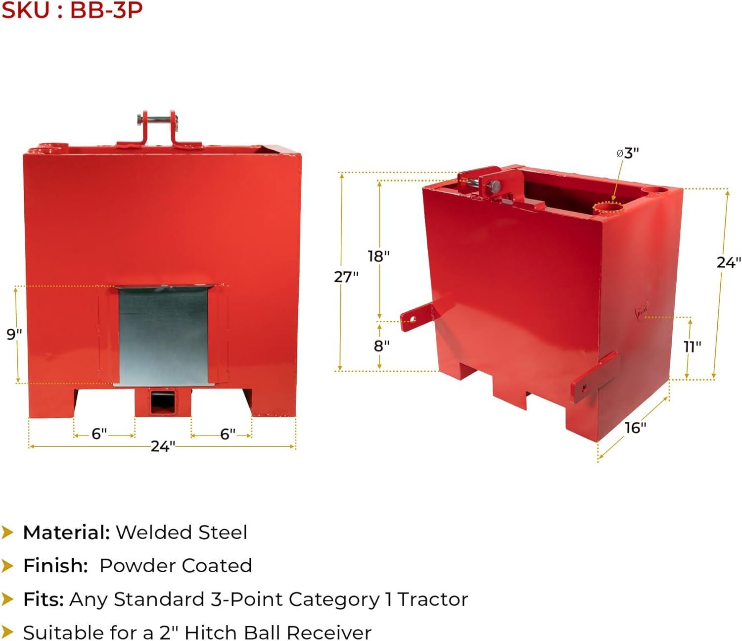 Durable Construction: Crafted from high-quality welded steel, this 3-point ballast box offers maximum strength, supporting up to 800 lbs to ensure stability and reduce tipping with front-end attachments.