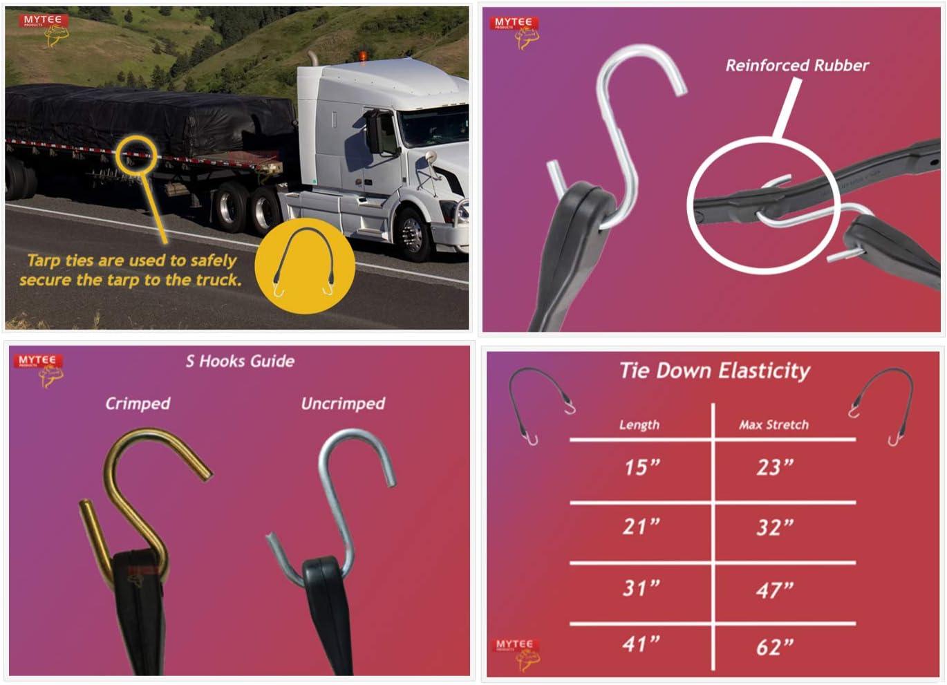 Mytee Products 31″ EPDM Tarp Rubber Bungee Straps -50 Pack, Made in USA(30″ Adjustable (50 Pack))