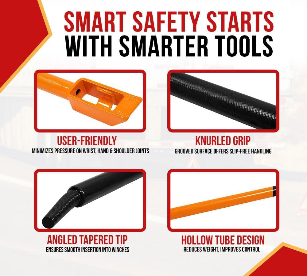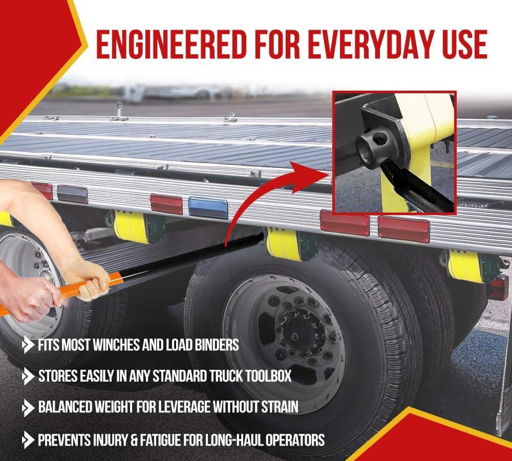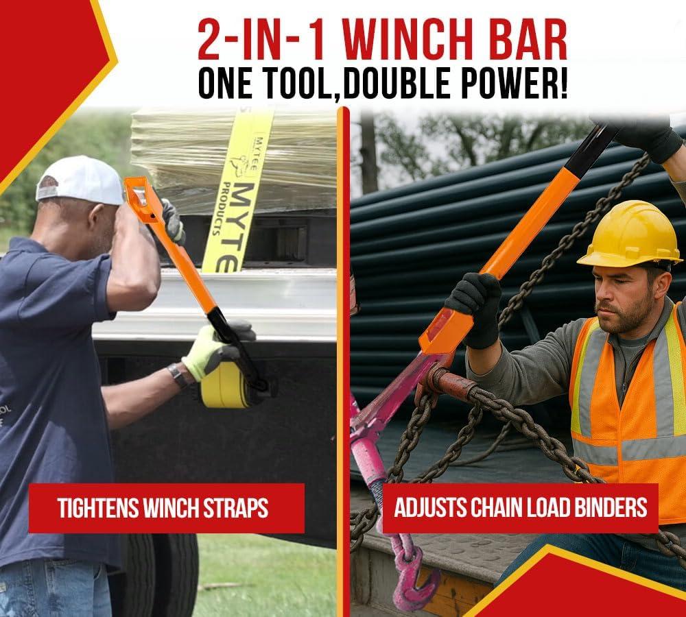 Mytee Products 39.5" Combination Winch Bar for Flatbed Trailer - Chrome Carbon-Steel Combo Winch Bar with Non-Slip Handle & Square Head for Chain Lever Binders(Black & Orange)