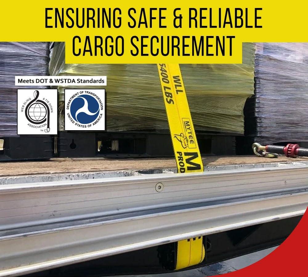 Mytee Products (10 Pack) Winch Straps 4″ x 30′ Yellow Heavy Duty Tie Down w/ 3.25″ Narrow Flat Hook WLL# 5400 lbs | 4 Inch Cargo Control for Flatbed Truck Utility Trailer(10 – Pack)