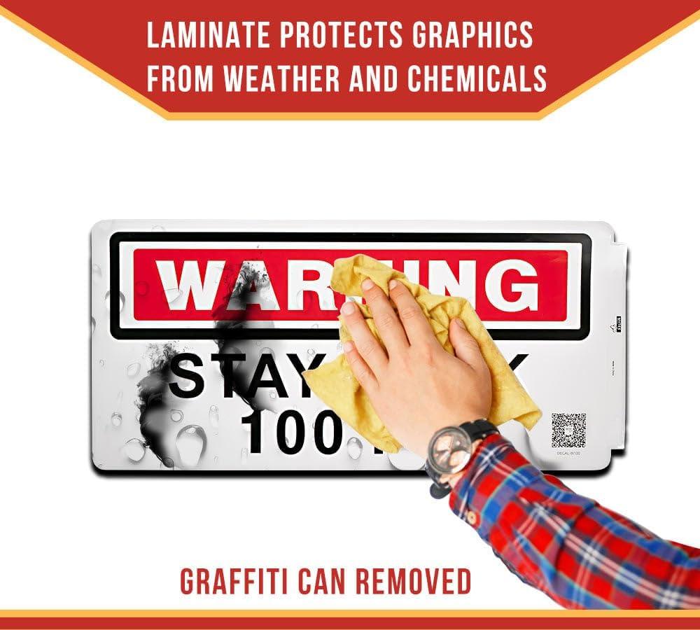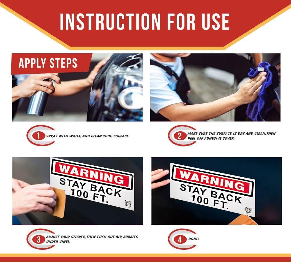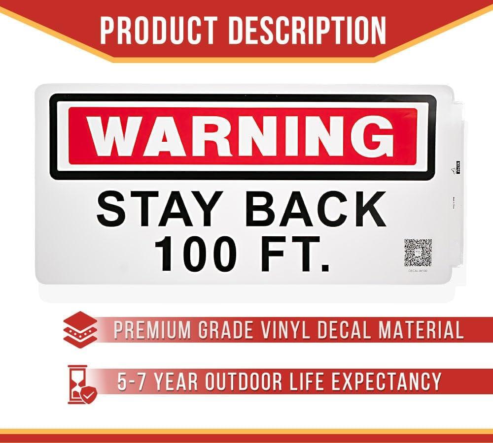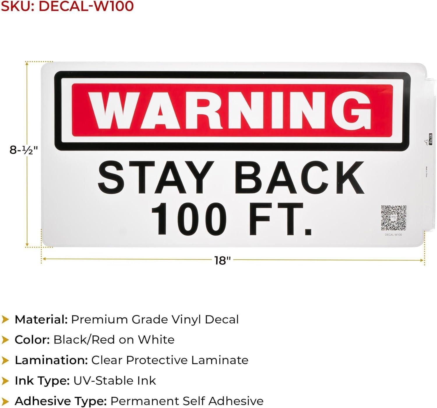 Mytee Products 4 Pack 11.75″x17.25″ Warning – Stay Back 200 Ft Not Responsible For Broken Windshields Self-Adhesive Decals Truck Sign, UV Resistant and Laminated Clear Visibility Trailer Label(Stay Back 100 FT)
