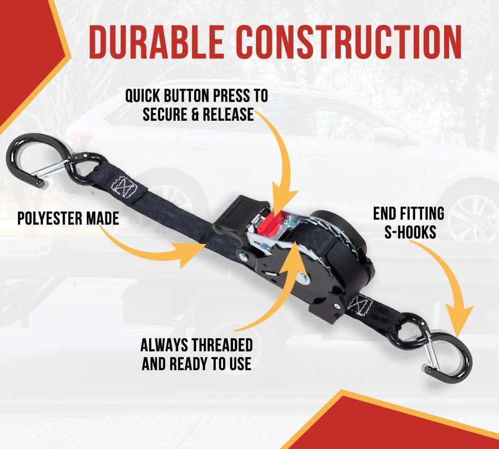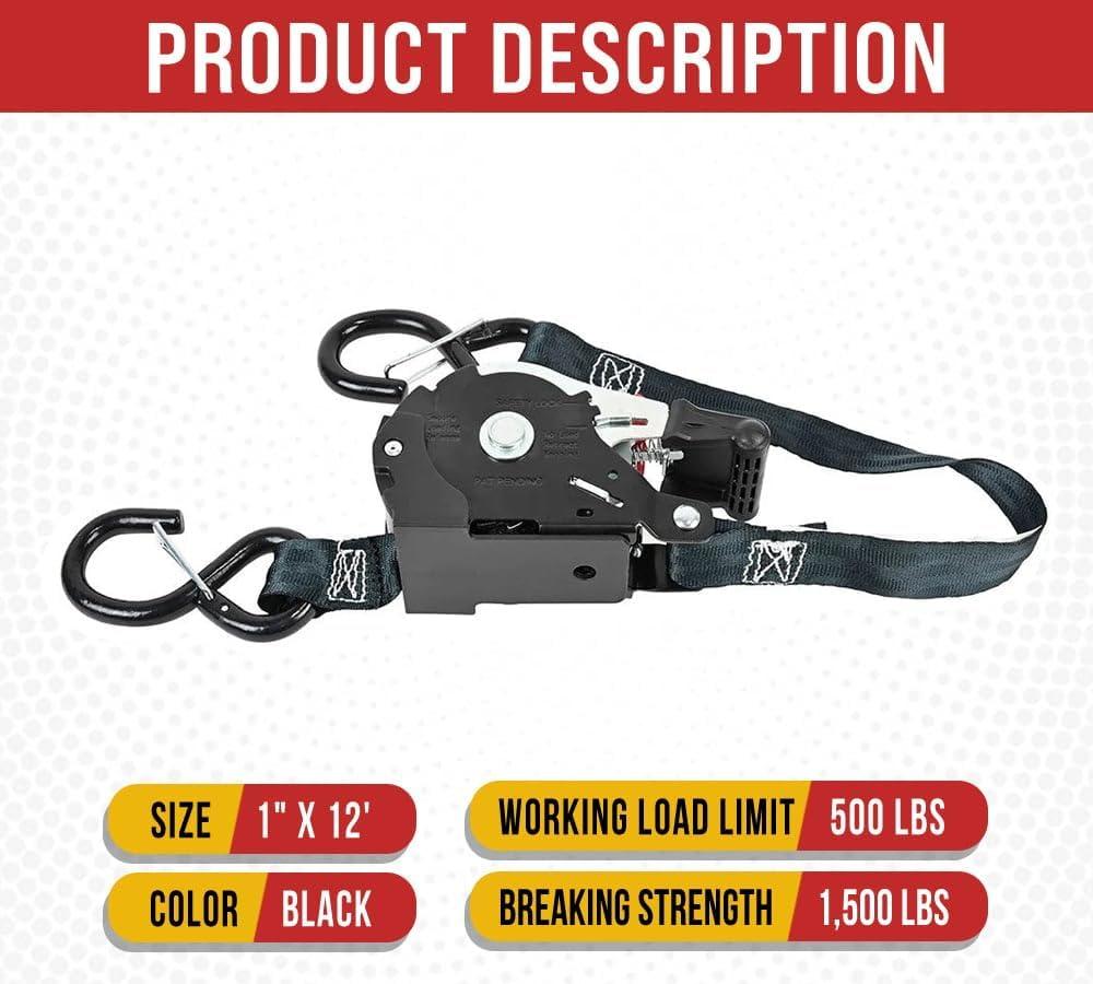 Be the first to review “Mytee Products 4 Pack 1”x12′ Retractable Ratchet Straps with Safety Lock S Hook, 1500 Breaking Strength, 4 Soft Loops & Storage Bag – Self Ratcheting Tie Down Strap for Boat, Jet Ski, ATVs, Bikes” Cancel reply