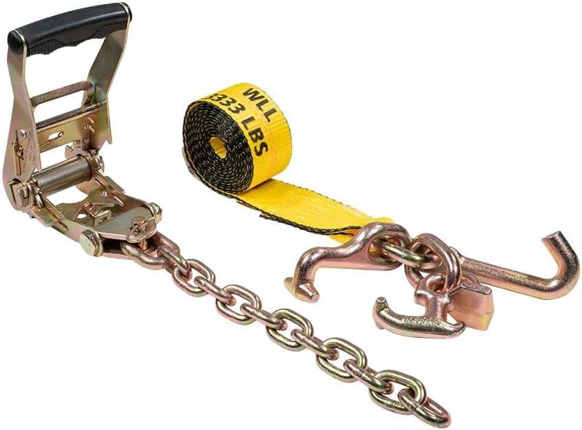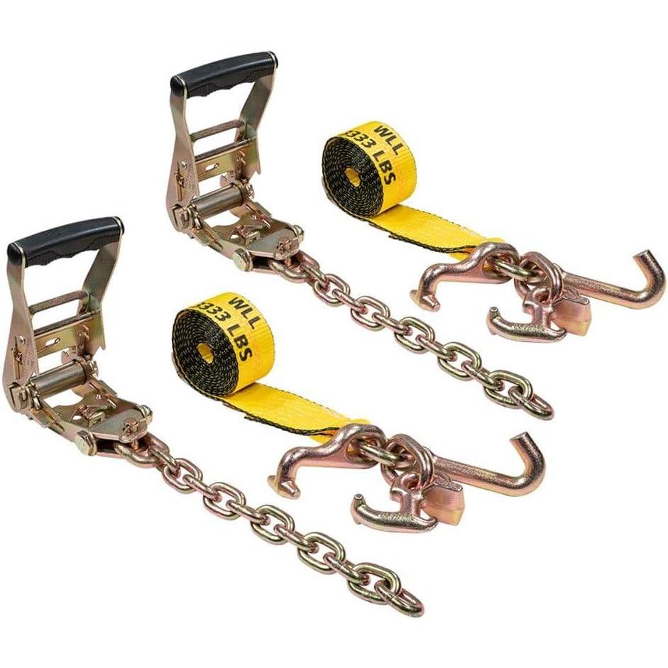 Mytee Products 4 Pack 2″ Tie Down Chain Ratchet Straps with G70 RTJ Cluster Hooks – Heavy Duty Roll Back Car Hauler Tow Ratchets with Chain 3,335 lbs WLL for Auto Towing & Recovery(2 – Pack)