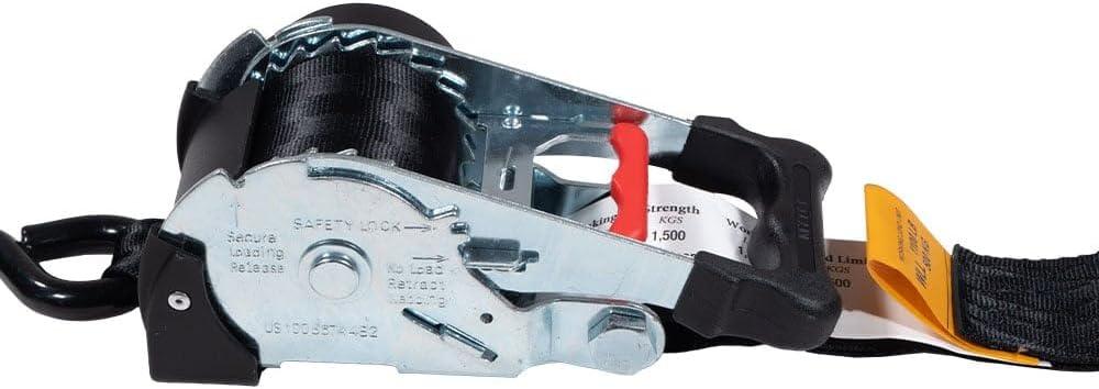 ✔ NO MORE TANGLED STRAPS. When you unhook the strap, and the ratchet handle is in the “Secure Loading Release” position, all 10 feet of strap automatically spools back tight into the steel casing. No loose straps or extra material to deal with.