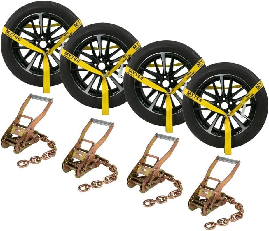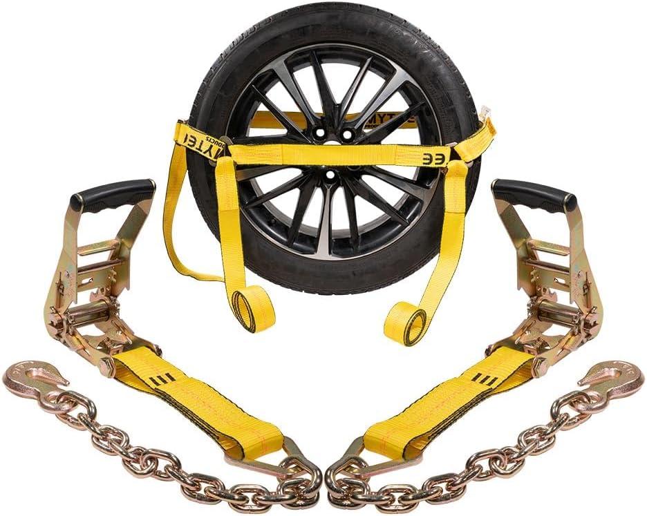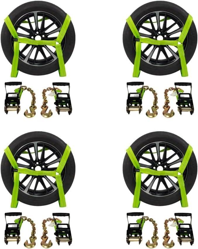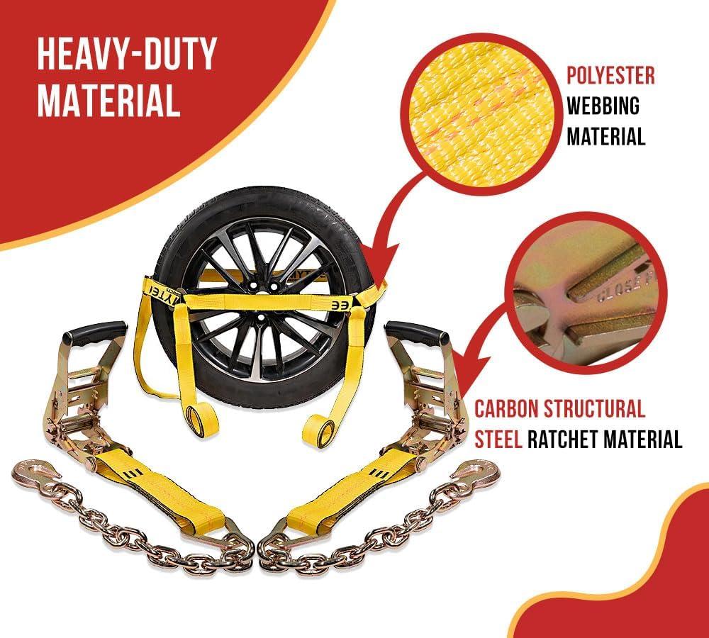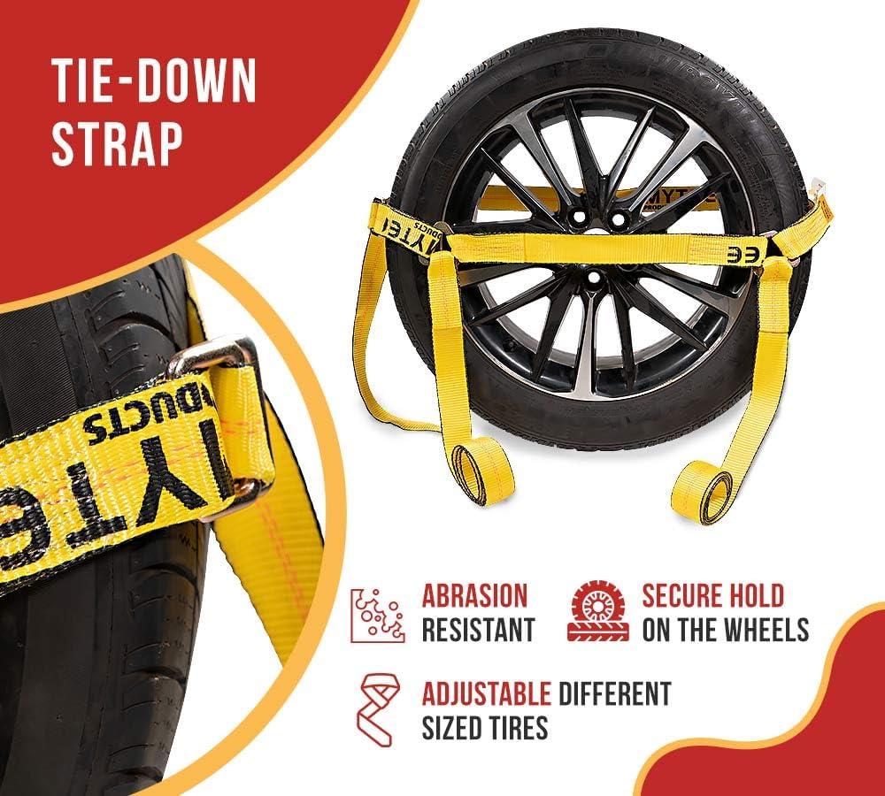 Durable Polyester Webbing – This wheel straps for hauling cars is resistant to stretching & cuts, the polyester webbing ensures long-lasting performance for utv tie down strap.