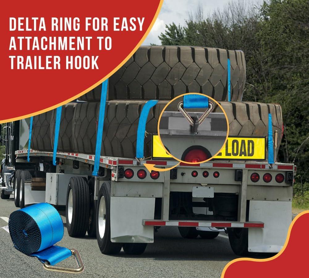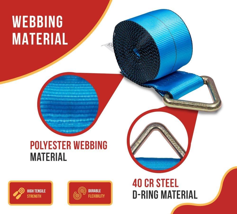 Mytee Products (4 Pack 4 in. x 30 ft. Winch Straps w D Ring(Blue)