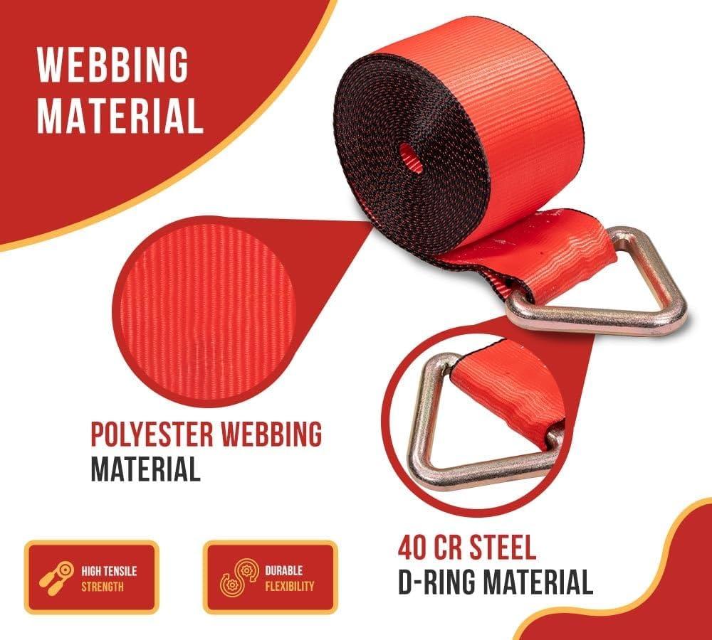 Mytee Products (4 Pack 4 in. x 30 ft. Winch Straps w D Ring(Red)