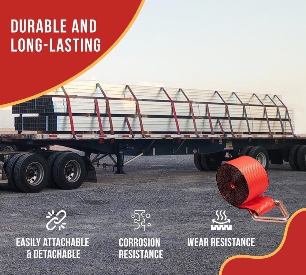 Mytee Products (4 Pack 4 in. x 30 ft. Winch Straps w D Ring(Orange)