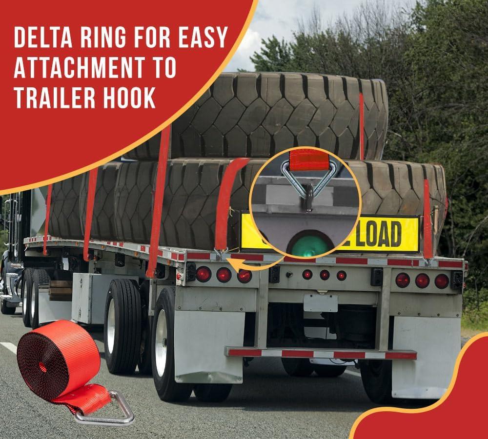 imageMytee Products 4 Pack 4 in x 30 ft Winch Straps w D RingRed