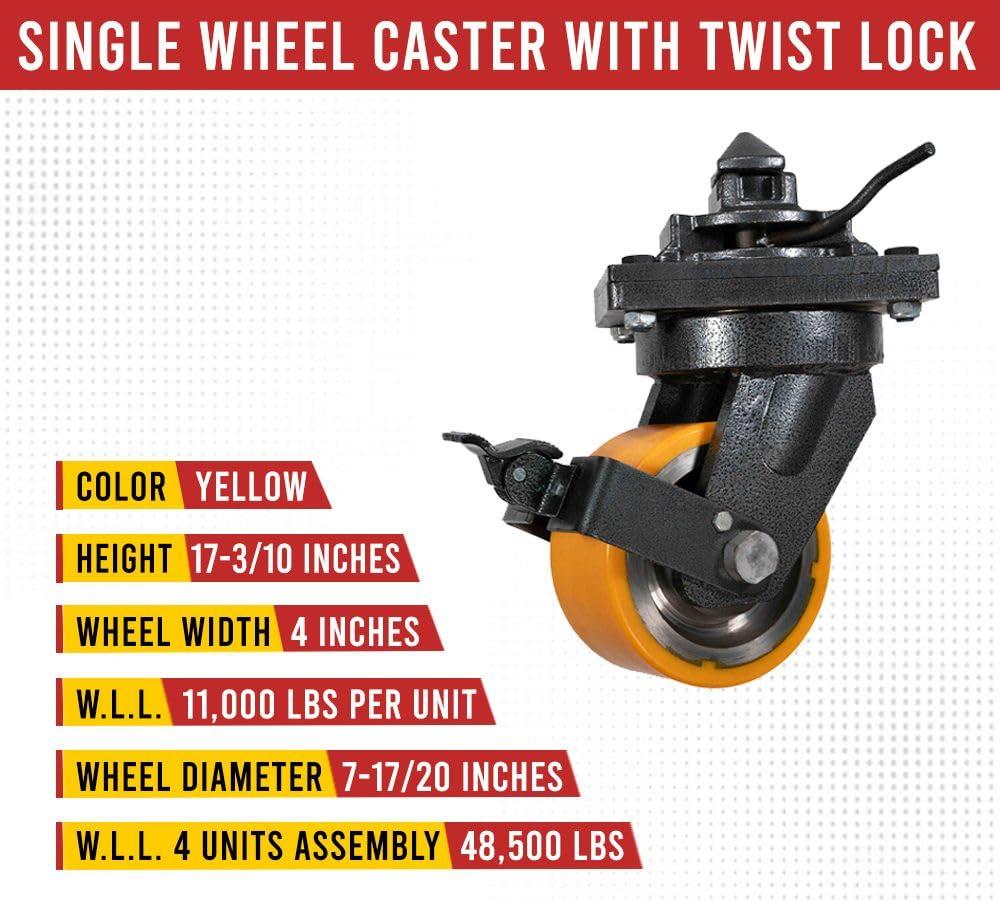 Mytee Products (4 Pack) 8″ ISO Shipping Container Caster Wheel with Brakes – 5 Ton Load Capacity (11000 lbs WLL/Wheel) – Shipping Container Moving Wheels Swivel Plate with Twist Lock(1 – Pack)