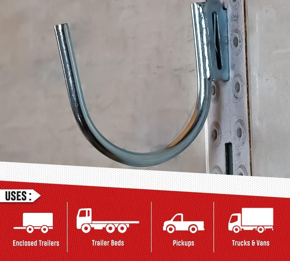 E-Track u-hooks are the perfect solution for securing cargo in your trailer, garage, or warehouse. Designed for easy use with e-track rails, these durable U hooks help organize and stabilize items like ladders, beams, hoses, and cables. With their sturdy construction, e-track u- hooks provide a reliable way to keep your space tidy and your equipment safe.