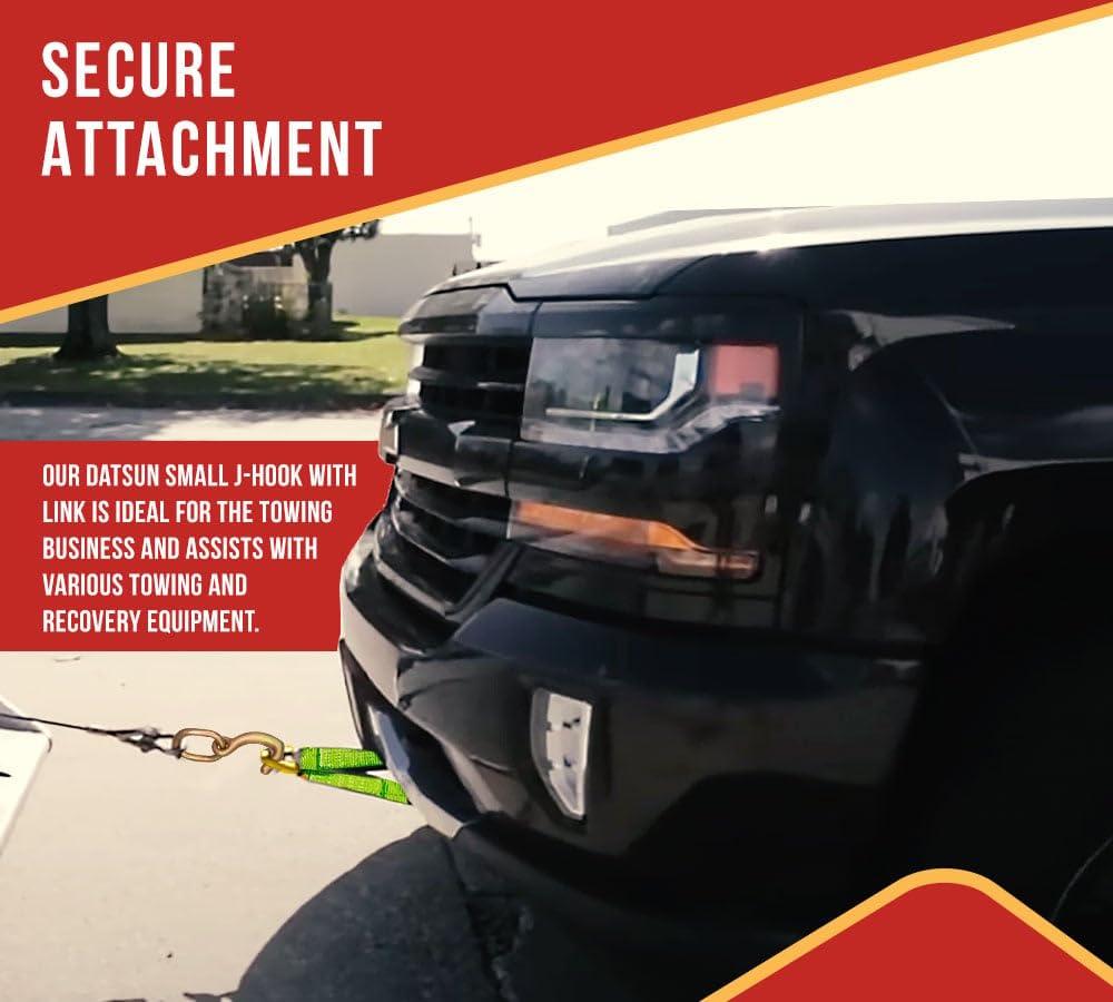 • Secure Attachment: Our Datsun mini J-hook with link is perfect for the towing industry and helps in various towing and recovery equipment. It offers secure attachment to various vehicle parts, including frame, axle, and other sturdy anchor points.
