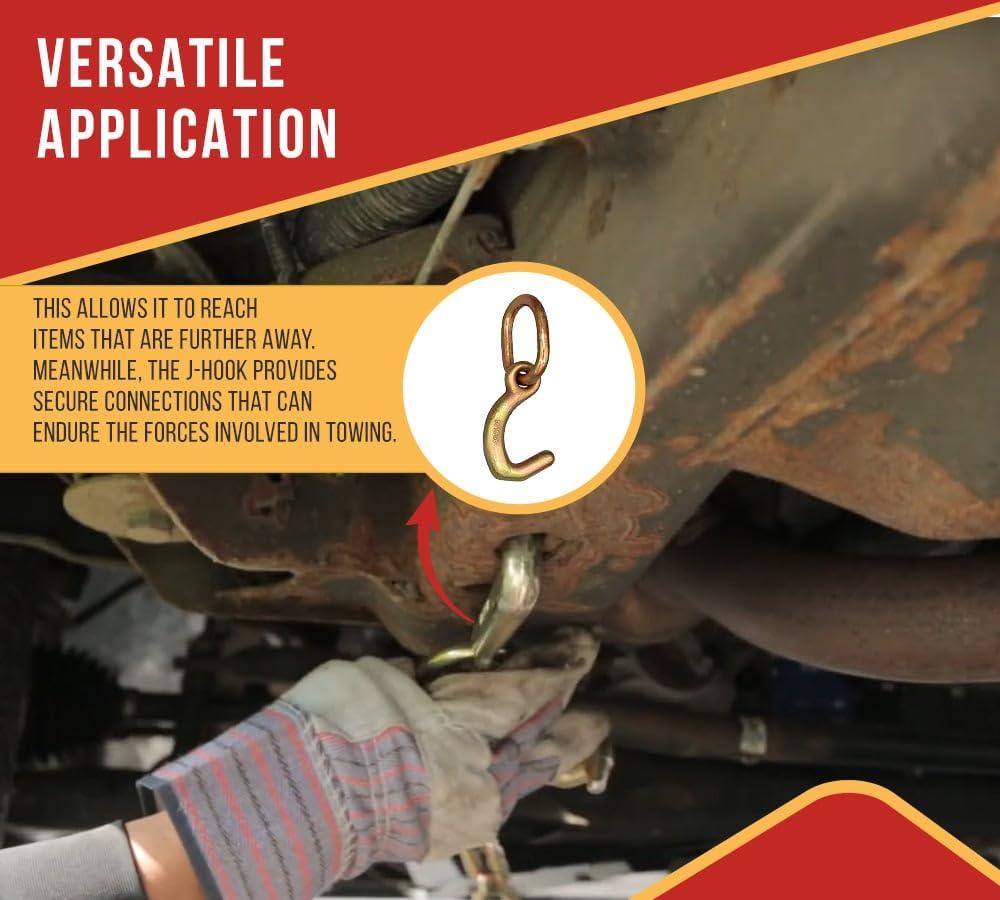 • Versatile Application: The extra links are made of steel material, and galvanized for an added layer of protection. It is valuable in situations where access is limited—while enabling it to reach objects that are further away. Meanwhile, the J-hook provides reliable connections designed to withstand forces involved in towing.