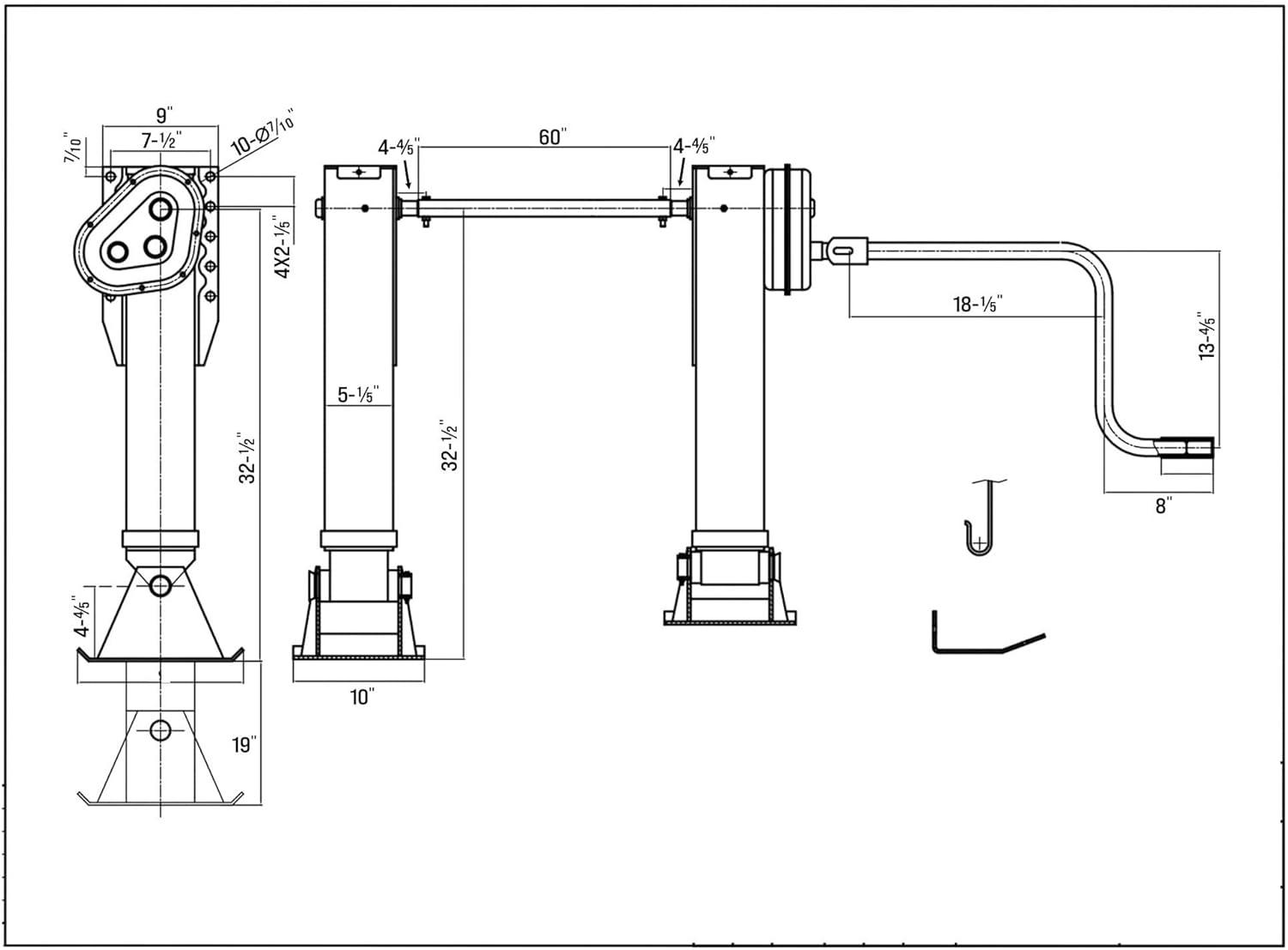 Crank Handle, Slave Leg, Pair of Braces and 59-3/4 inch Connecting Shaft Included with Ordered Pairs