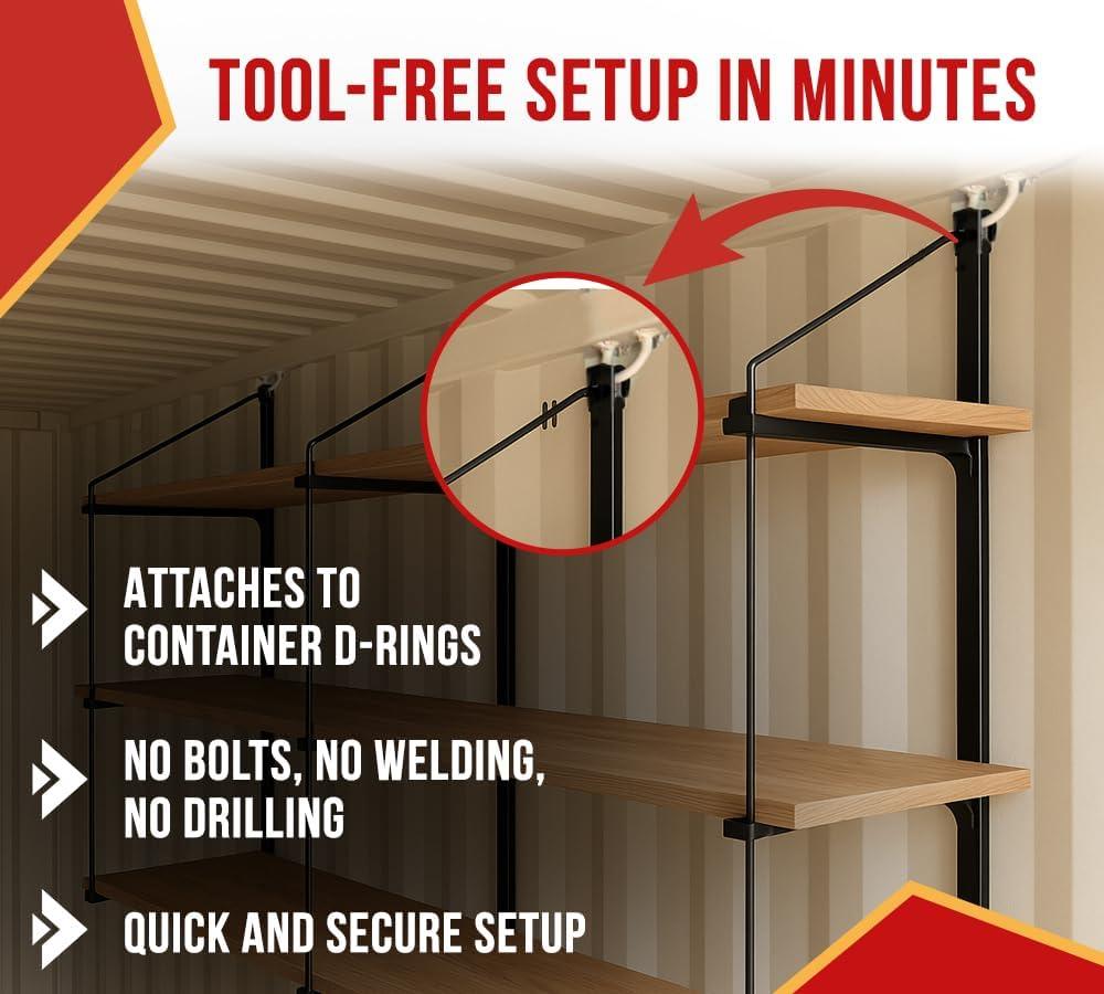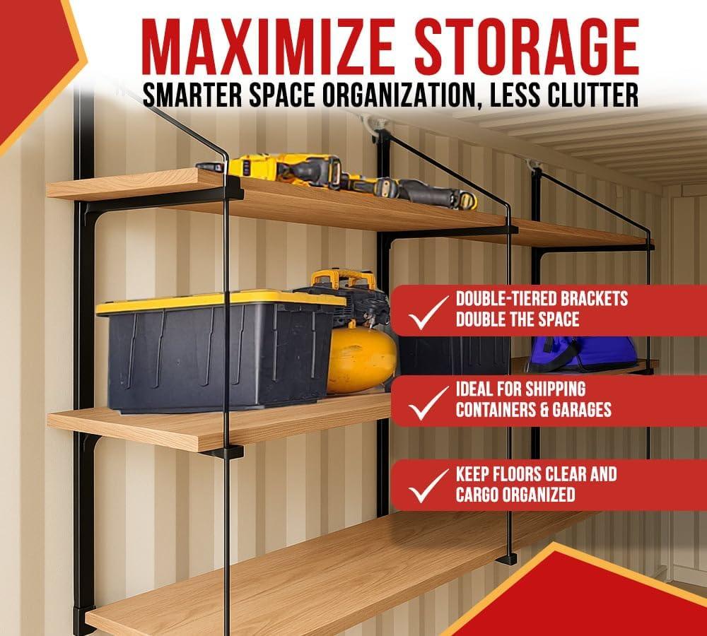 • Ample Load-bearing Capacity: This three-level shipping container delivers an impressive load-bearing capacity of 550 per bracket. You can select an appropriate number of brackets for heavy-duty applications and consider the shelf length to understand the shelves needed. Our level 3 shelves are perfect for storing toolboxes and other necessities effectively.