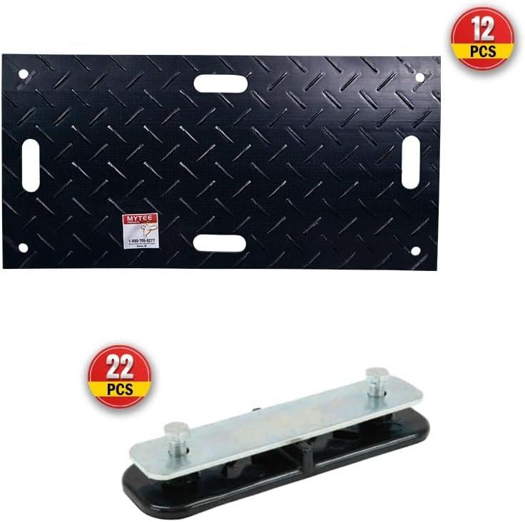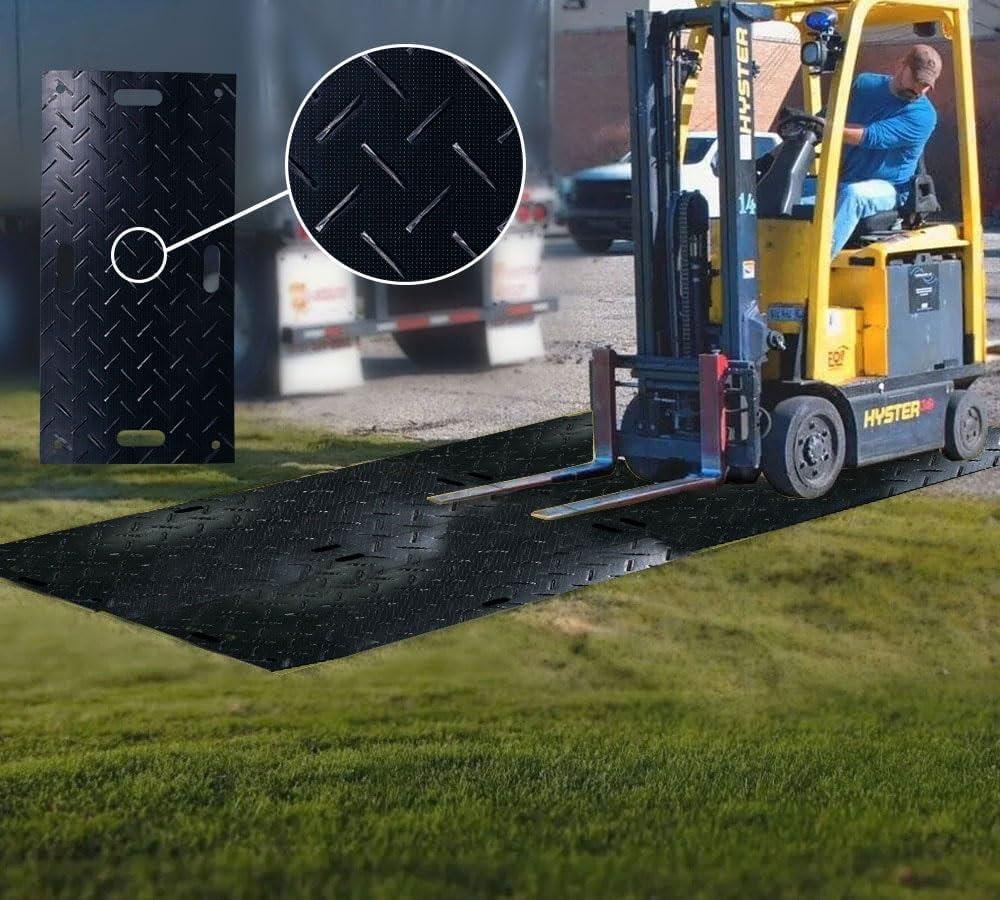 ✔4 Pcs Ground Protection Mats – Black, 2ft (W) x 8ft (L), 6 Pcs Single Connectors for Ground Protection Mats