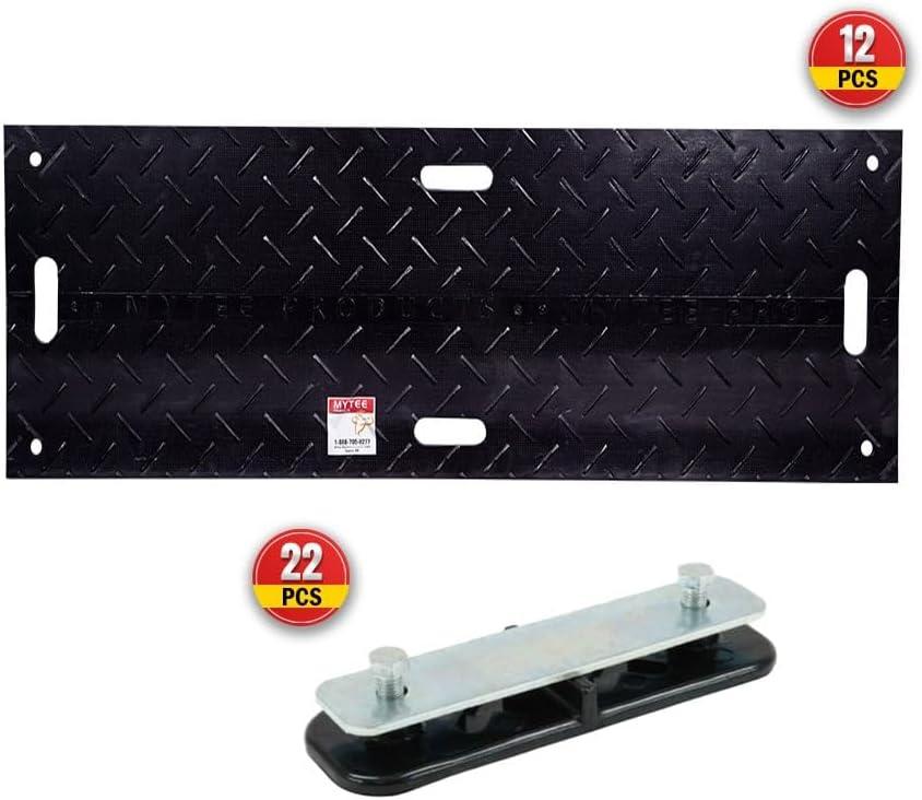 Mytee Products 4 Pcs Ground Protection Mats – Black, 3′ x 8′, Heavy Equipment Mats w/ 6 Pcs Single Connectors(3 FT x 6 FT)
