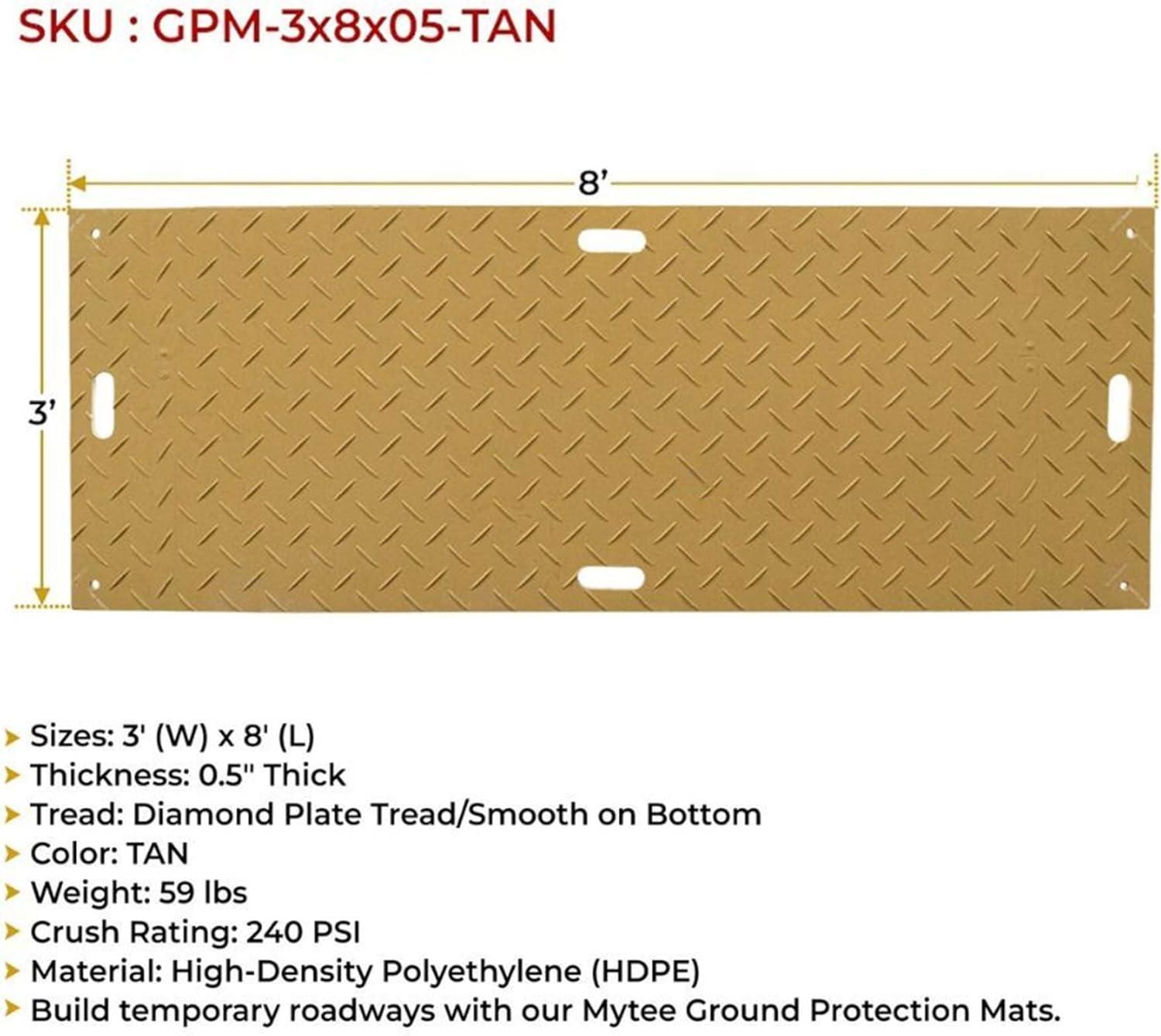 Mytee Products 4 Pcs Ground Protection Mats 4′ x 8′ – Tan, 4ft (W) x 8ft (L), Heavy Equipment Mats w/ 6 Pcs Single Connectors(4 FT x 8 FT)