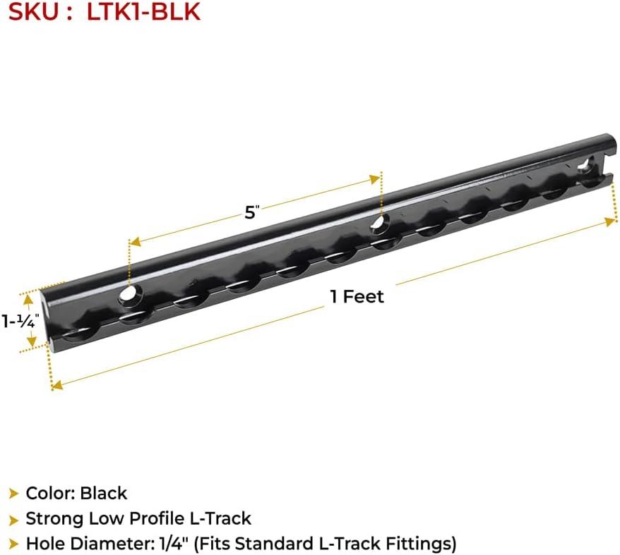 ✔ 4 Pcs – 1 Foot L-Track Black Powder Coated: Length: 48″ (w/9 Mounting Holes). Hole Diameter is 0.25″ (Fits Standard L-Track Fittings)