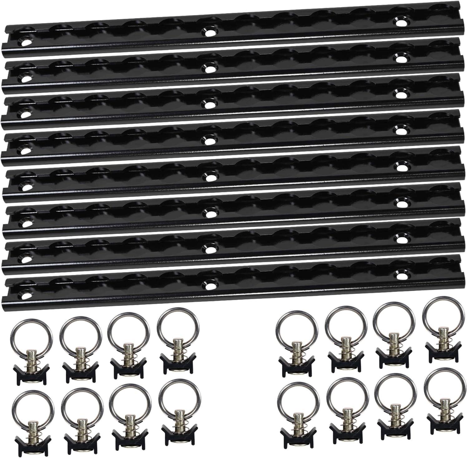 Mytee Products 4 Pcs of 12 inch Black L Track Rail & 8 Pcs of Single Stud Fitting Hooks with Round Ring for Trailers & Pickup Trucks – Heavy Duty L Track Tie Down System for Motorcycles, ATVs & UTVs(Stainless)