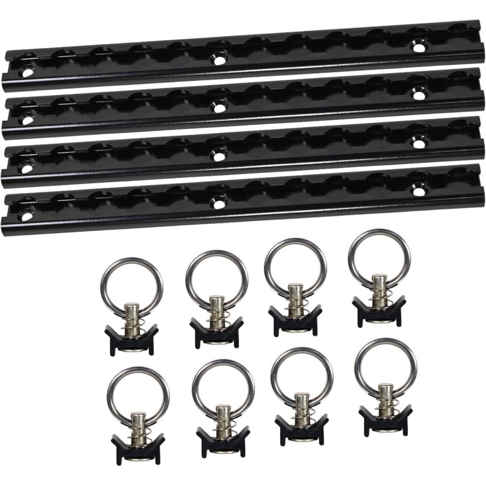 imageMytee Products 4 Pcs of 12 inch Black L Track Rail ampamp 8 Pcs of Single Stud Fitting Hooks with Round Ring for Trailers ampamp Pickup Trucks  Heavy Duty L Track Tie Down System for Motorcycles ATVs ampamp UTVsStainless