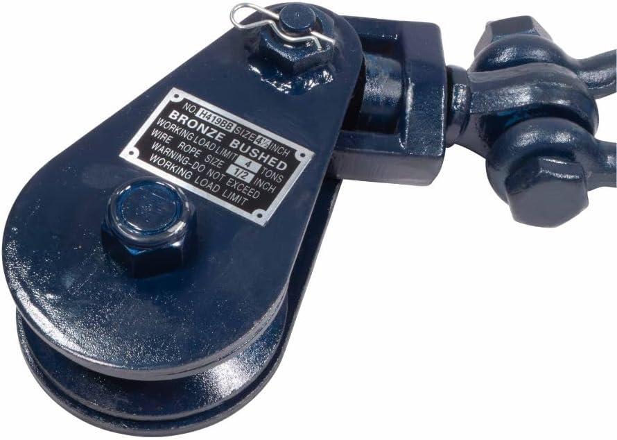 Mytee Products 4 Ton Snatch Block with Shackle for 1/2″ Wire Rope – 4-1/2″ Sheave Tree Sling & Tow Wrecker – Heavy Duty Pulley Block for Towing, Lifting, Rigging Use(1 – Pack)