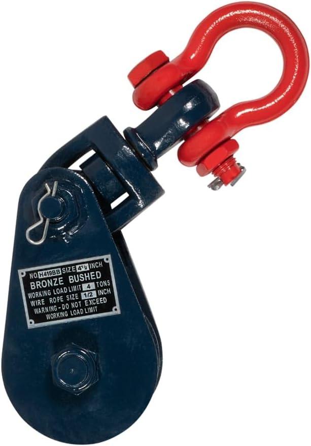 Mytee Products 4 Ton Snatch Block with Shackle for 1/2″ Wire Rope – 4-1/2″ Sheave Tree Sling & Tow Wrecker – Heavy Duty Pulley Block for Towing, Lifting, Rigging Use(4 – Pack)