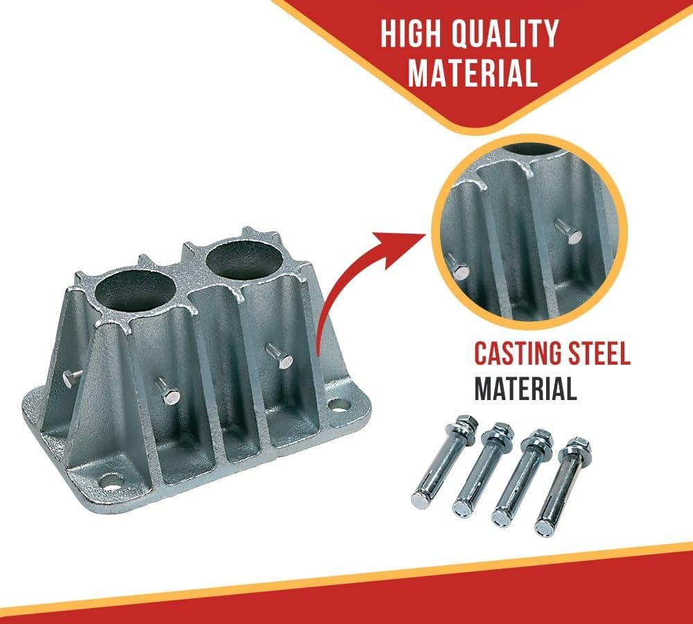 Mytee Products 4″ X 6-5/8″ Steel Pipe Safety Railing Double Mounting Socket w/Anchor Bolt Sets for Construction Sites & Industrial Facilities(2 – Pack)