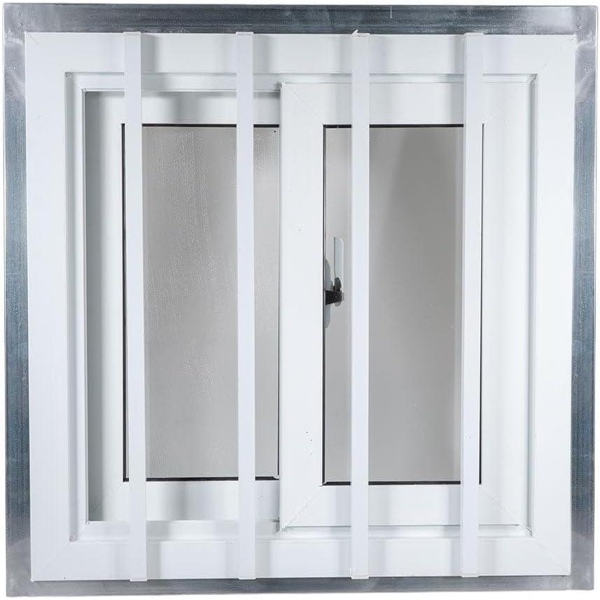 Mytee Products 44″ x 44″ Shipping Container Window with Security Bars – PVC Frame Sliding Window for Side Walls, Shipping Containers, Tree House, Garage & Store Box – Dual Panes for Insulation(White)