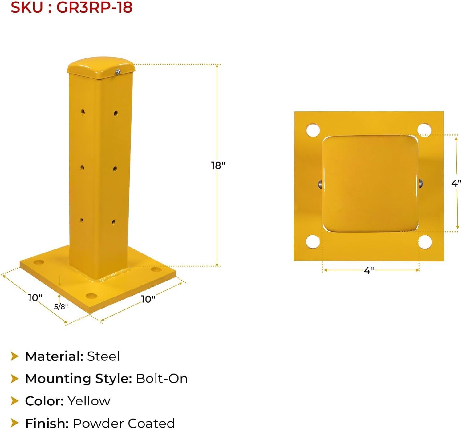 Mytee Products 4"x 4"x42" Bolt-On Steel Rigid Post for 3-Ribbed Guard Rails - Yellow(4" (L) x 4" (W) x 18" (H))